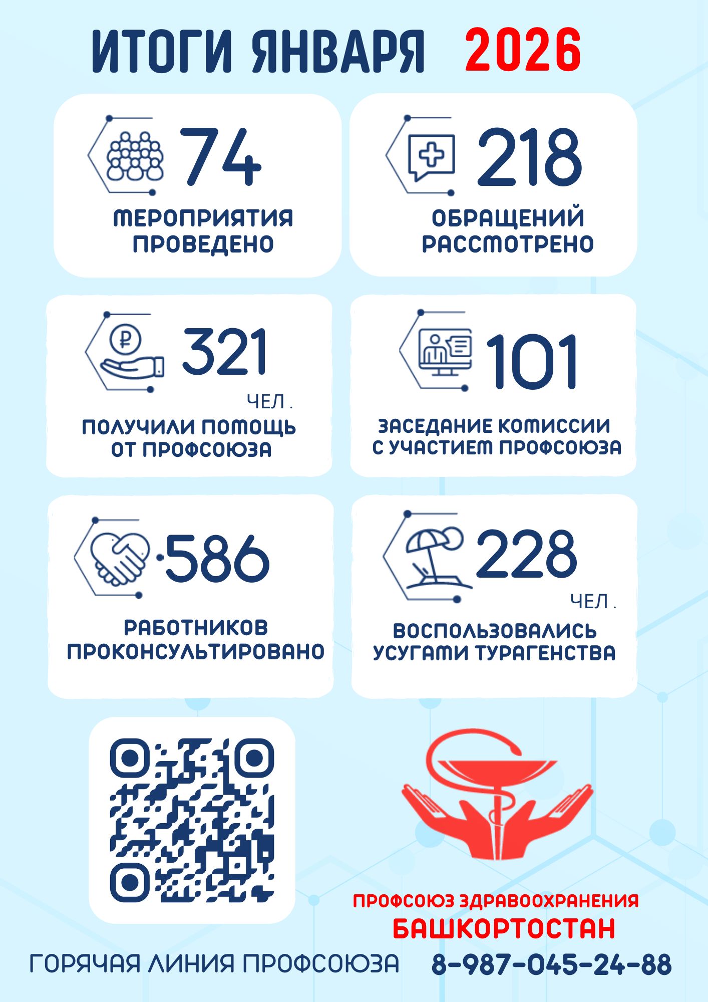 Профсоюз — надежный защитник тех, кто каждый день борется за здоровье и жизни людей. Наша солидарность, наша способность отстаивать справедливость и достойные условия труда — это не просто слова, это наша сила и наша миссия.