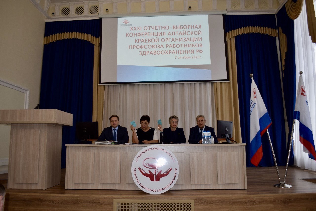В видеообращении к делегатам конференции председатель Профсоюза Анатолий Домников отметил: «Несмотря на объективные трудности, Алтайская краевая организация сохраняет верность профсоюзным принципам и уверенно держит курс на защиту интересов работников здравоохранения. Вы продолжаете активное взаимодействие с социальными партнёрами и обеспечиваете участие членов Профсоюза в ключевых направлениях деятельности».