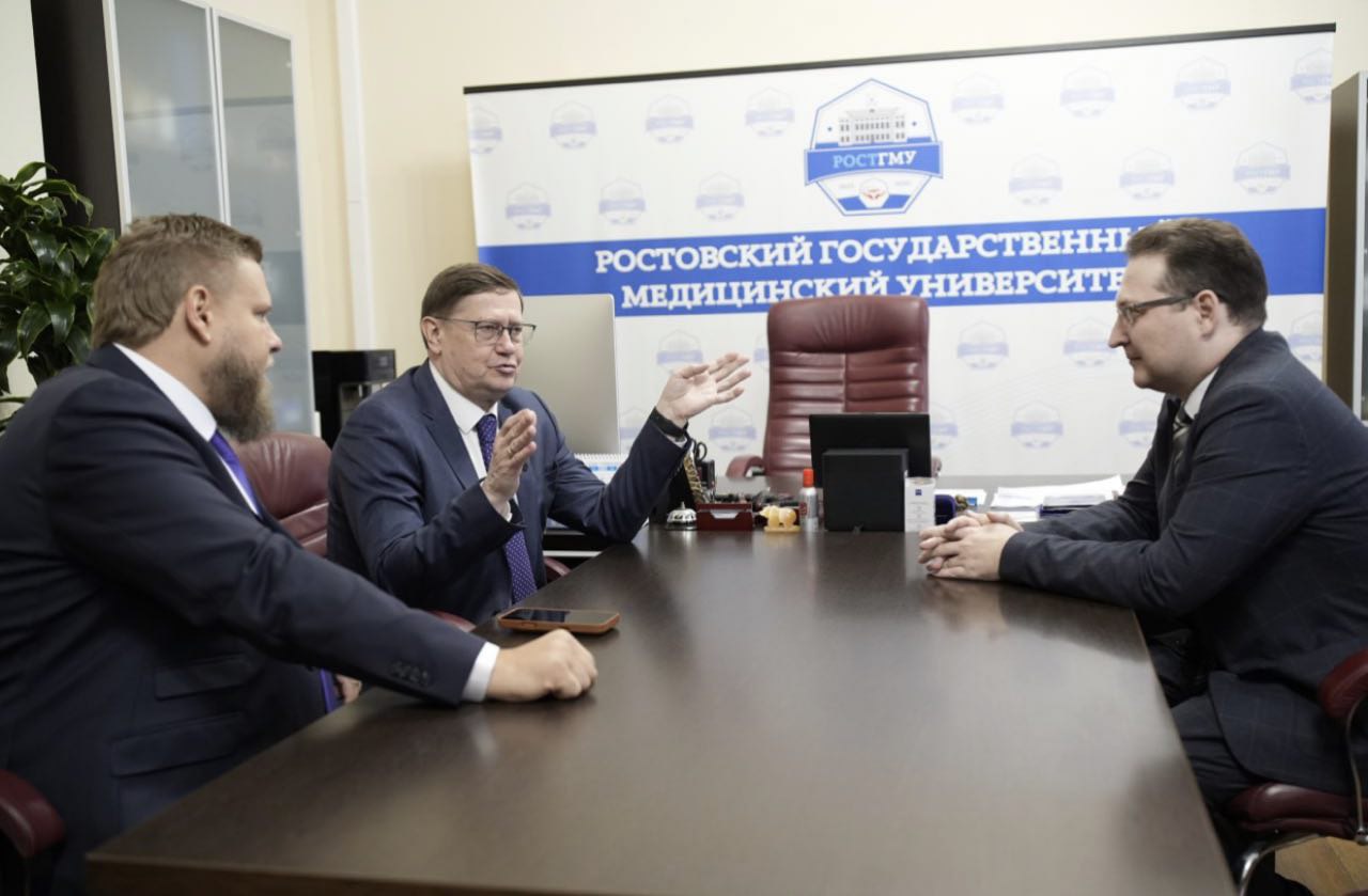 В рамках пребывания на донской земле Анатолий Домников посетил Ростовский государственный медуниверситет. В разговоре с руководителем учебного заведения Михаилом Шишовым и лидером Ростовской областной организации Профсоюза Дмитрием Закусиловым поднимались вопросы развития наставничества, студотрядовского движения, успехов команды КВН университета.