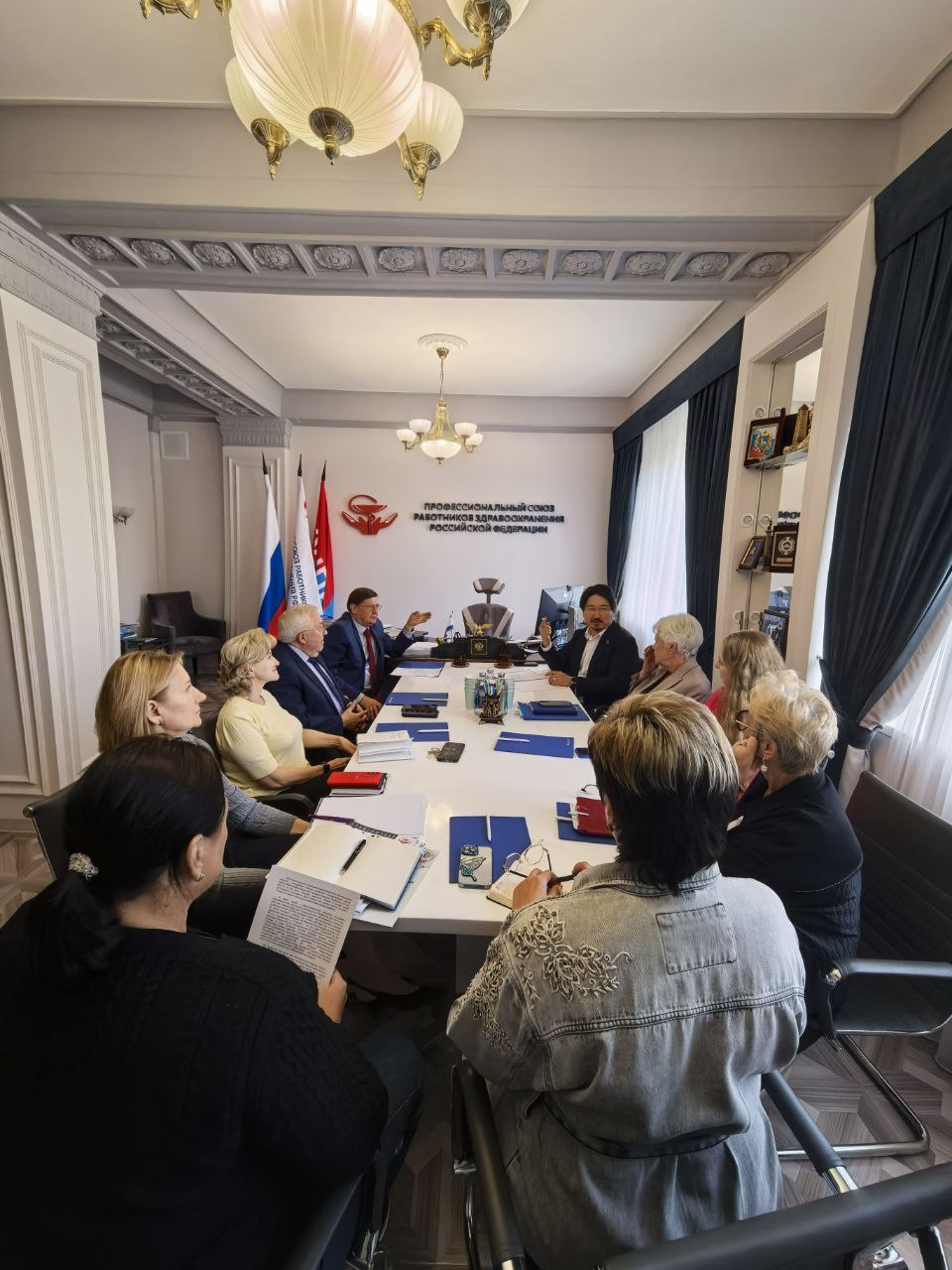 Сегодня в штаб-квартире Профсоюза наш лидер Анатолий Домников провел встречу с депутатом Государственной думы, первым заместителем председателя комитета по охране здоровья нижней палаты парламента Бадмой Башанкаевым. Разговор шел о перспективных направлениях сотрудничества, совместных проектах, а также о законодательных инициативах, касающихся отрасли здравоохранения.