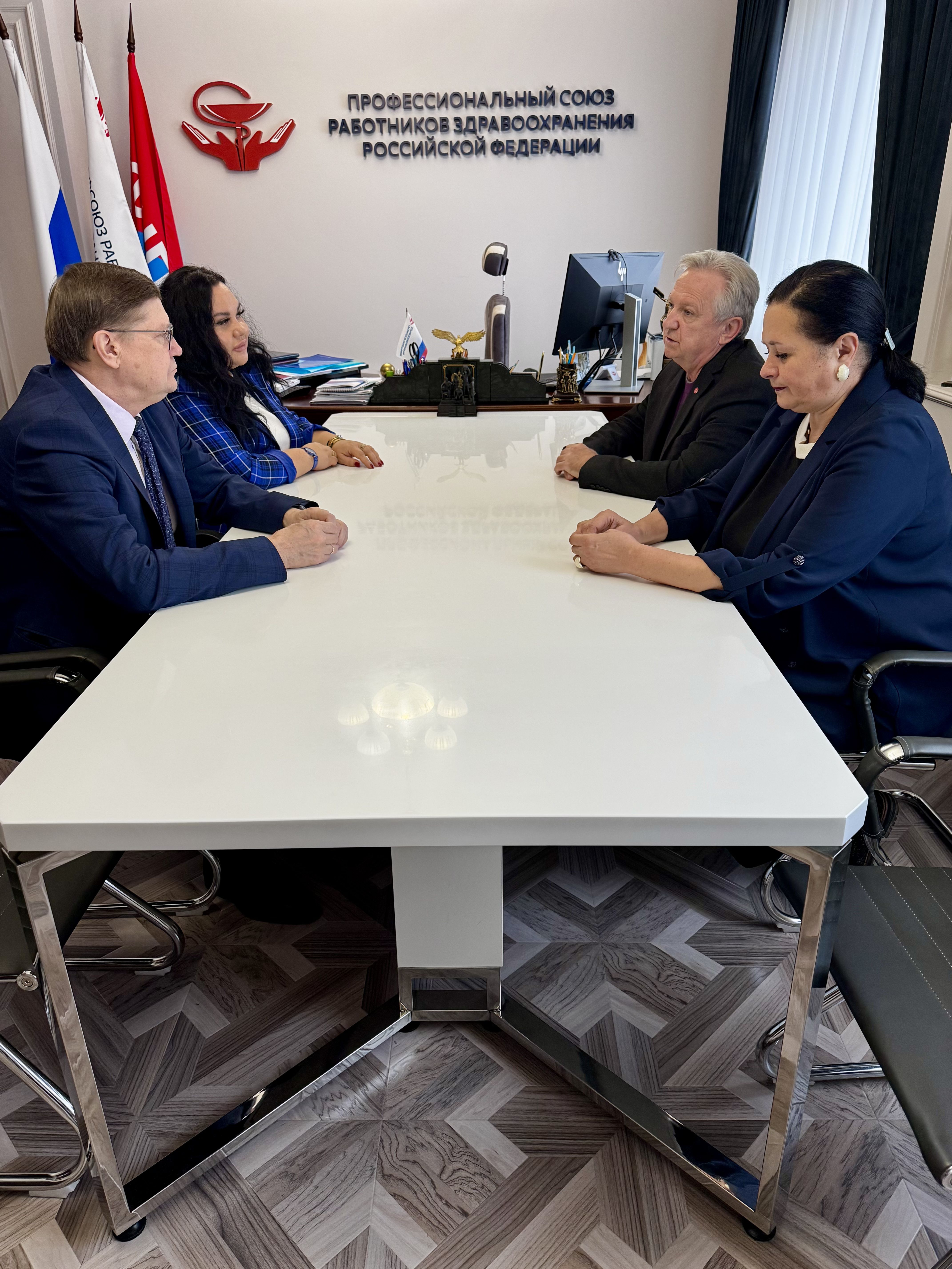 Анатолий Домников встретился сегодня с председателем Саратовской областной организации Сергеем Прохоровым и лидером первички клинического госпиталя ветеранов войн этого региона Еленой Сметаниной. Во встрече также участвовала начальник управления по связям с общественностью, работе с молодежью и международному сотрудничеству ЦК Профсоюза Ольга Жанкевич.