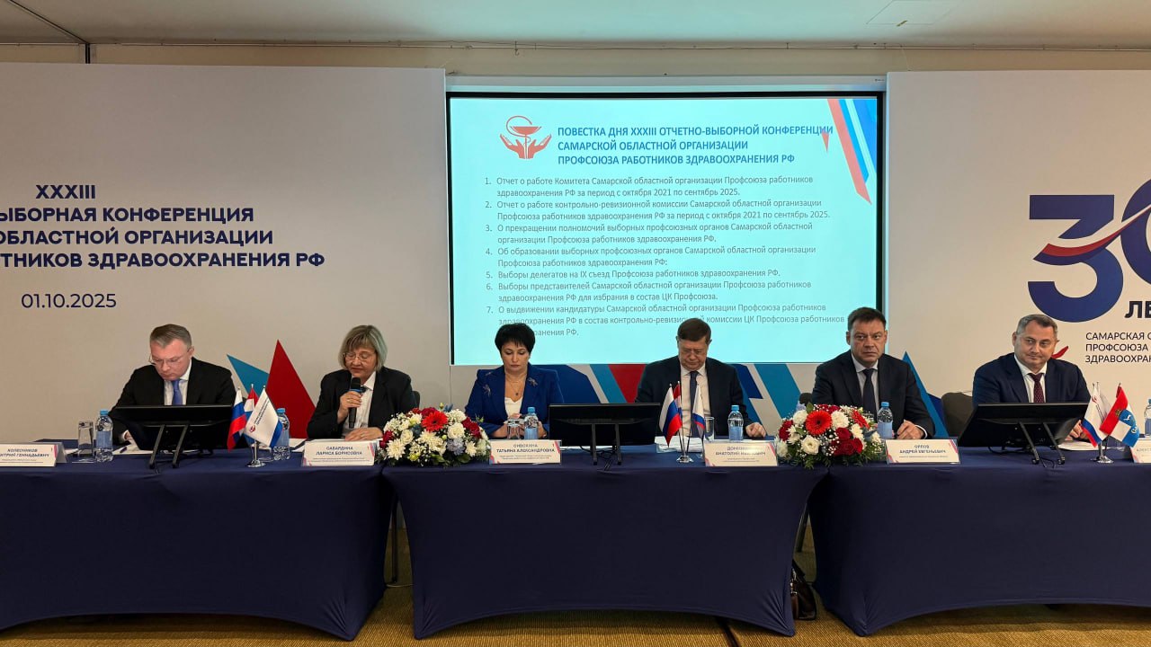 Среди гостей — председатель Профсоюза Анатолий Домников, министр здравоохранения Самарской области Андрей Орлов, лидер профобъединения Дмитрий Колесников и ректор Самарского государственного медуниверситета Александр Колсанов.