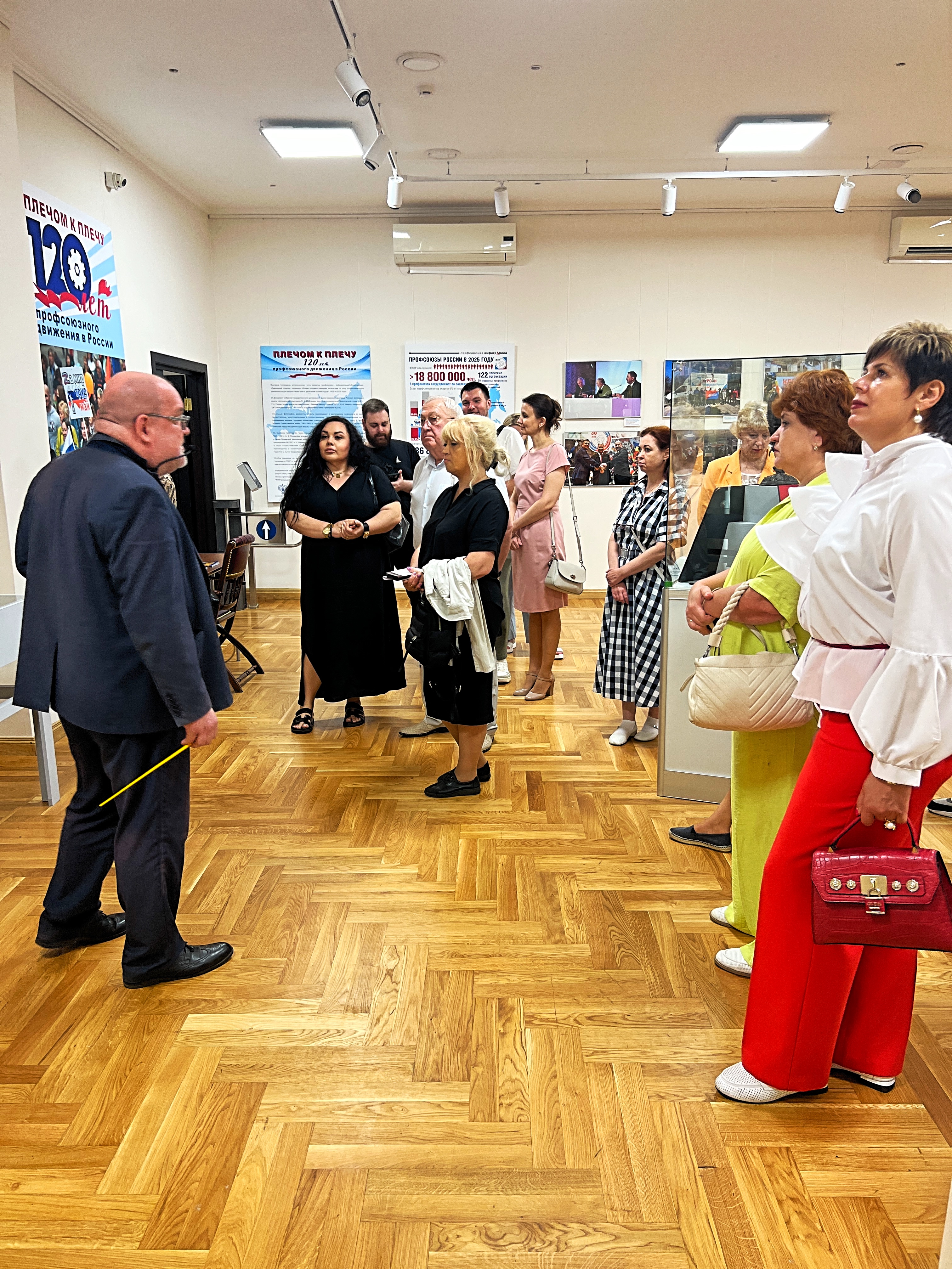 Сегодня сотрудники аппарата Профсоюза во главе с и.о. председателя Владимиром Беспяткиным посетили масштабную выставку, посвященную 120-летию профсоюзного движения нашей страны. Экспозиция развернута в музее современной истории России.