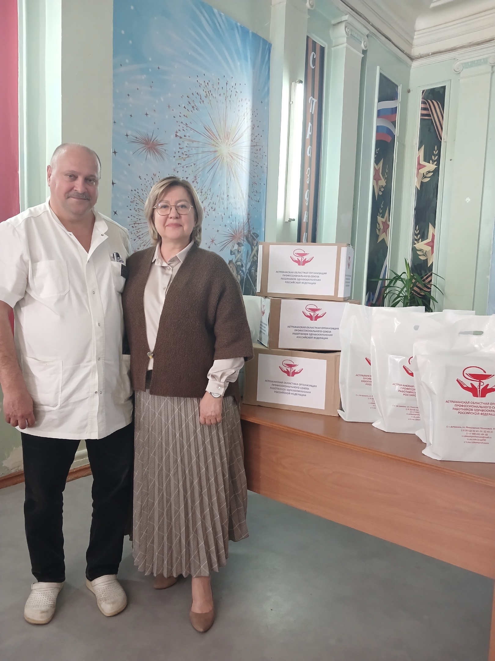 Сегодня очередная партия гуманитарной помощи от Астраханской областной организации профсоюза работников здравоохранения РФ была передана в военный госпиталь (г. Астрахань).
