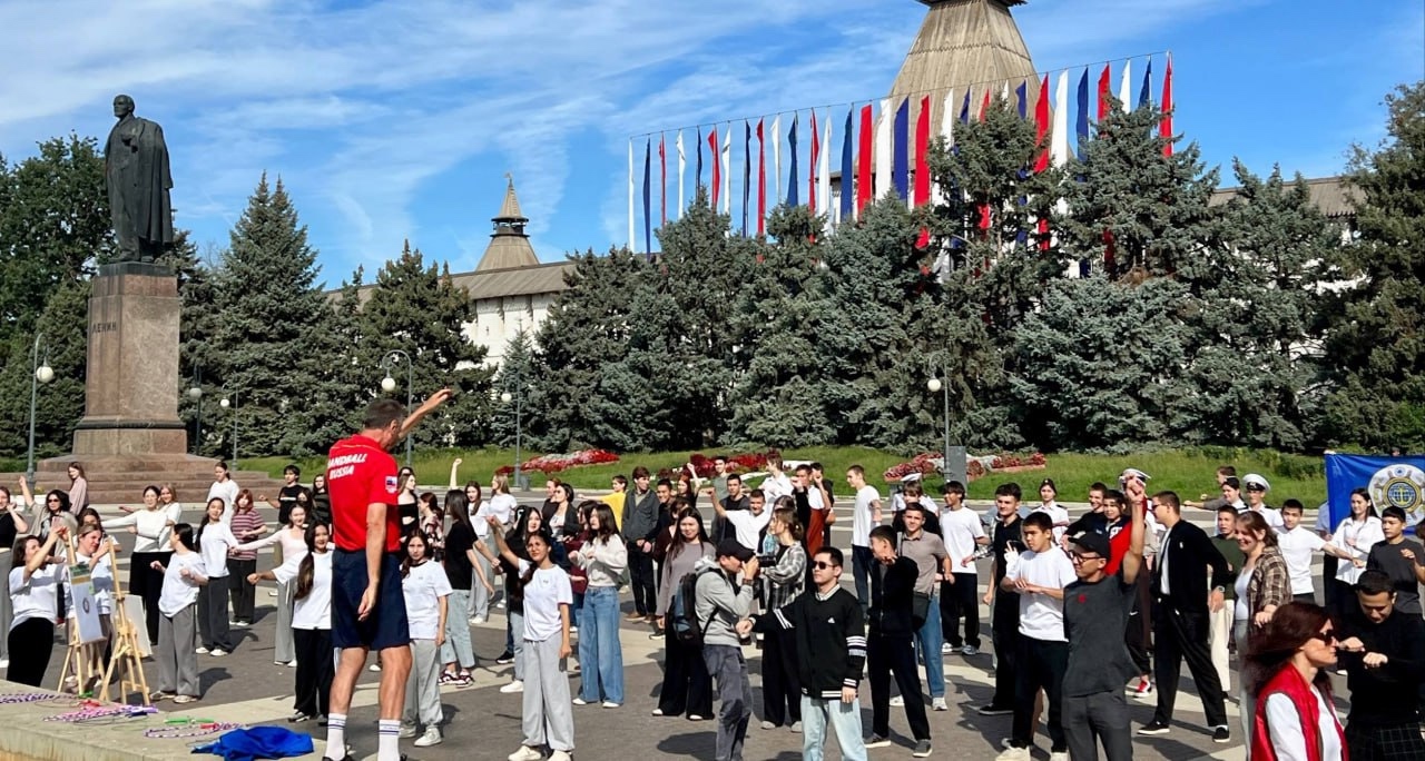 Их утро началось с энергичной зарядки на площади Ленина вместе с Олимпийским чемпионом по гандболу, заслуженным мастером спорта Андреем Тюменцевым.