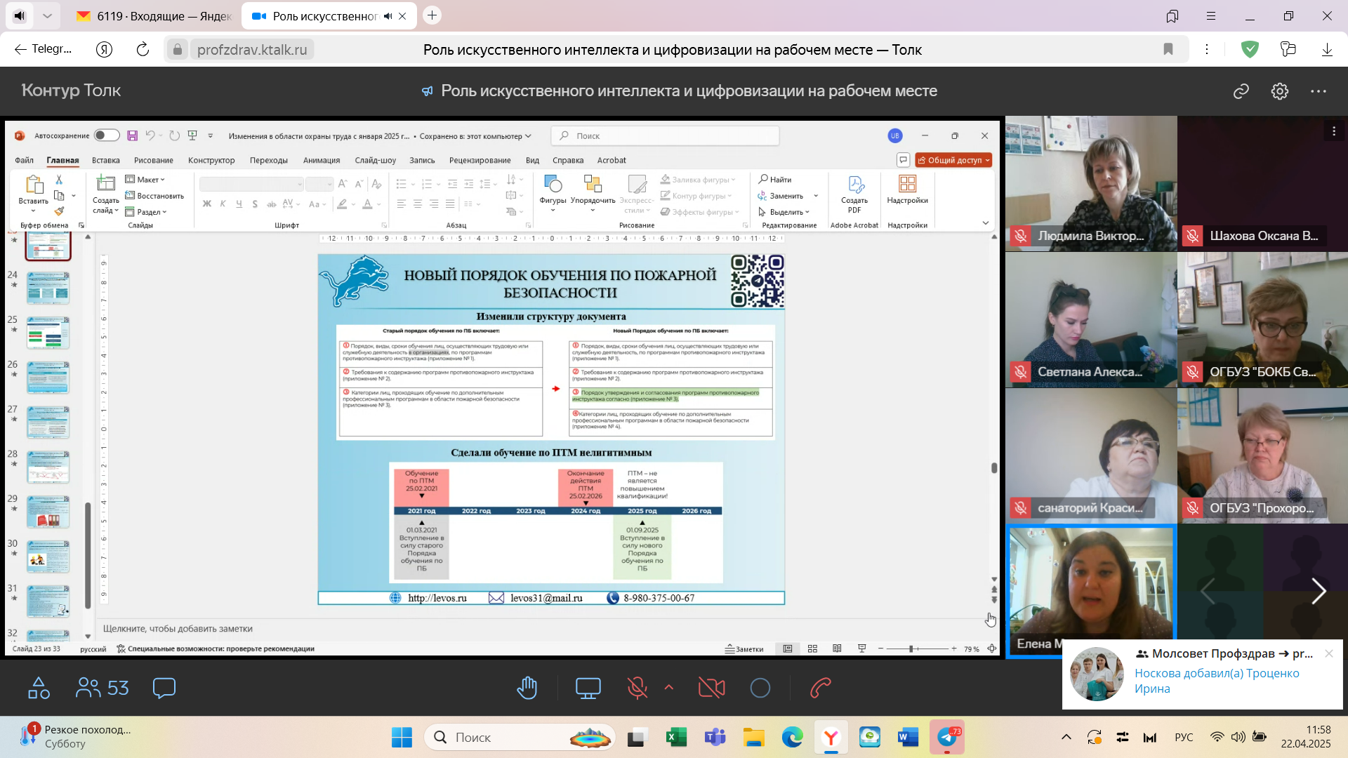 Тема «Роль искусственного интеллекта и цифровизации на рабочем месте» стала ключевой для обсуждения председателей профсоюзных комитетов, специалистов и уполномоченных лиц по охране труда учреждений здравоохранения Белгородской области.