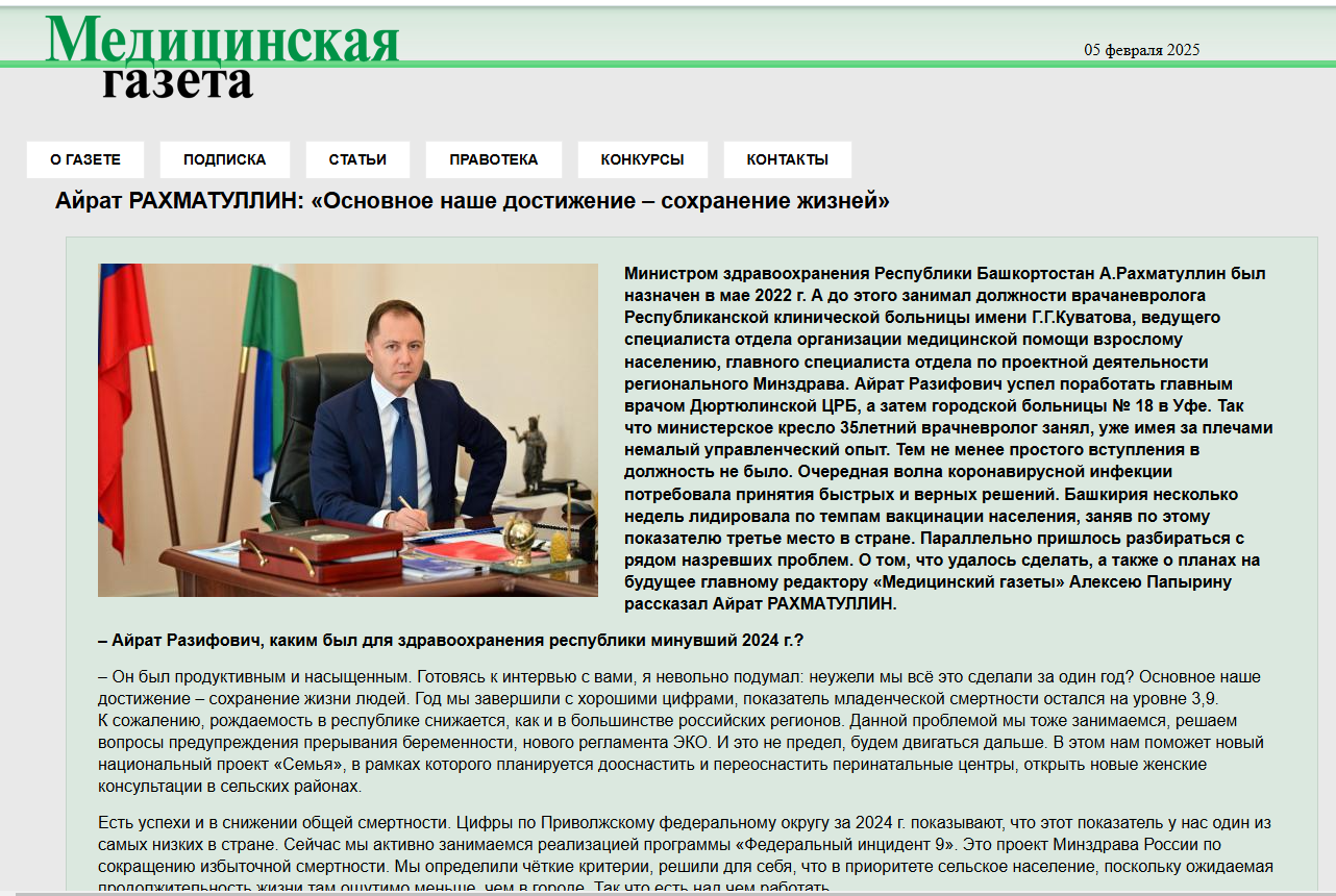 О том, что удалось сделать, а также о планах на будущее главному редактору «Медицинский газеты» Алексею Папырину рассказал Айрат РАХМАТУЛЛИН.