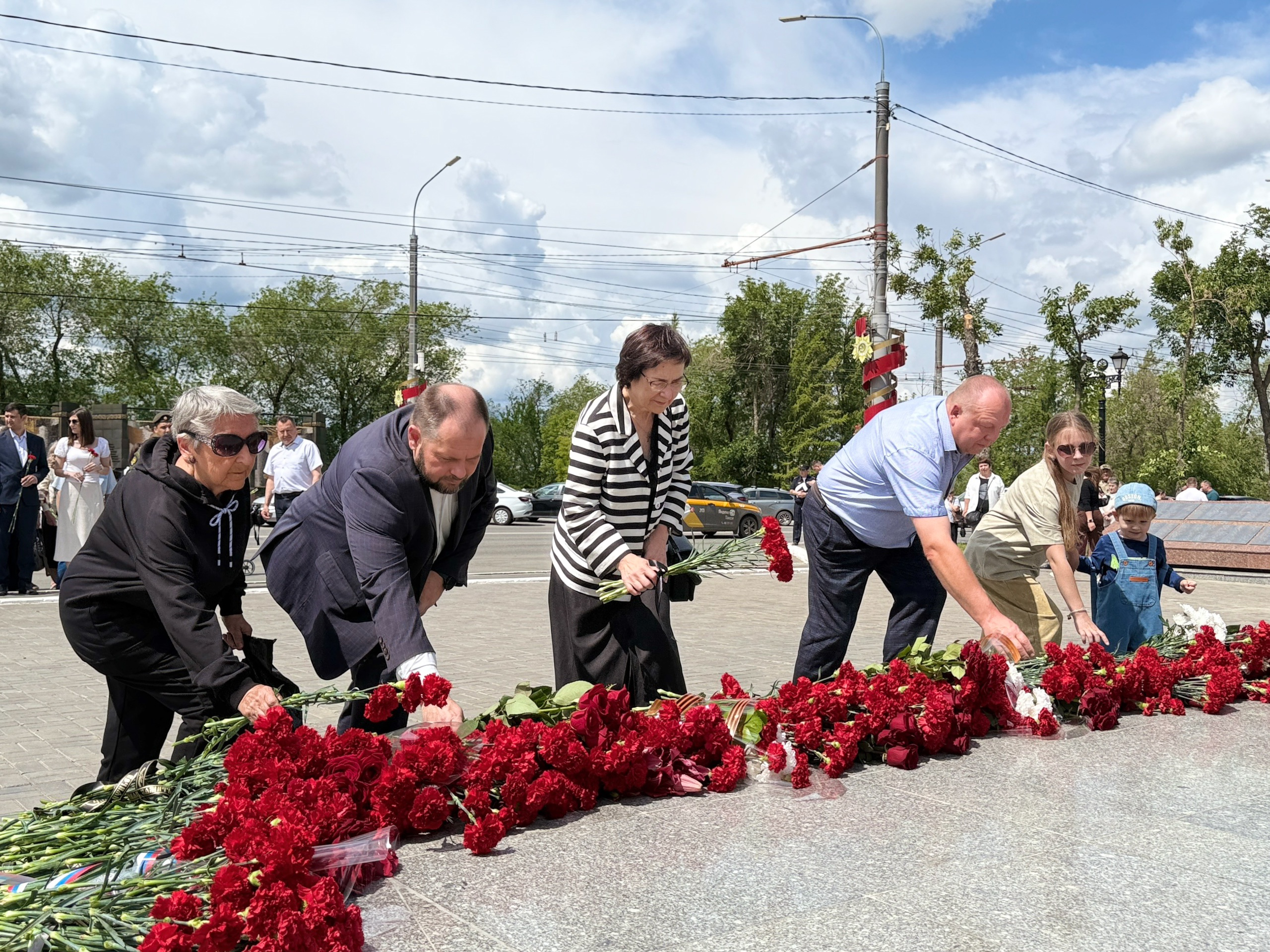 Торжественная церемония возложения цветов прошла у мемориала «Вечный огонь». Минутой молчания собравшиеся отдали дань уважения героям, защищавшим Родину.