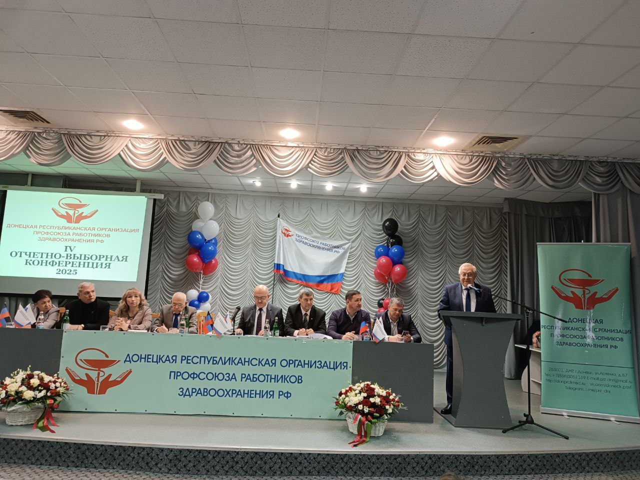 Заместитель председателя Профсоюза Владимир Беспяткин посетил ДНР, где сегодня состоялась отчетно-выборная конференция Донецкой республиканской организации Профсоюза. В ней приняли участие 85 делегатов от первичных, городских и районных организаций, представители региональных минздрава и минтруда, Народного совета и главные врачи медучреждений Республики, а также лидер Профсоюза в Ростовской области Олег Борцов.