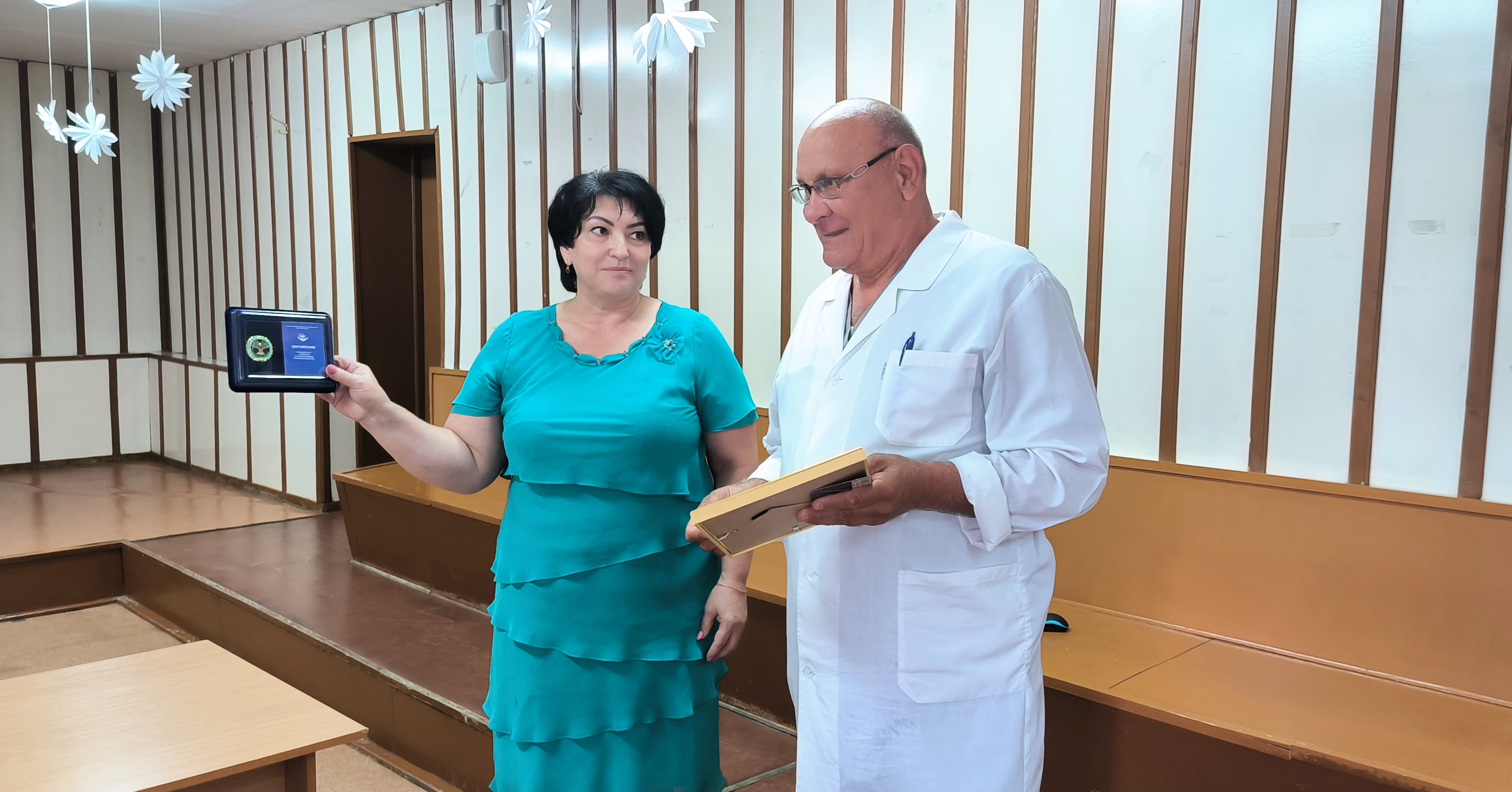 Сегодня, 25 июня, председатель первички Хакасской организации Профсоюза работников здравоохранения РФ Светлана Золотухина на торжественном мероприятии в Государственном бюджетном учреждении здравоохранения Республики Хакасия "Абаканская межрайонная клиническая больница» вручила Сергею Гаськову – представителю медицинской династии Нагрудный знак Профсоюза работников здравоохранения РФ «За верность и служение медицине. Медицинская династия». Гаськов Сергей Васильевич - заведующий хирургическим отделением первичной специализированной медико-санитарной помощи Абаканской межрайонной клинической больницы, врач-хирург. Основательница династии – его мать, медицинская сестра Евдокия Даниловна Гаськова. Супруга Сергея Васильевича - Гаськова Любовь Михайловна тоже врач-хирург. Их сын, Сергей Сергеевич Гаськов - врач по рентгенэндоваскулярной диагностике и лечению. Дочь Сергея Васильевича и Любовь Михайловны - Татьяна Васильевна Кучусова тоже связала свою жизнь с медициной. В настоящее время работает медицинской сестрой участковой в детской поликлинике.