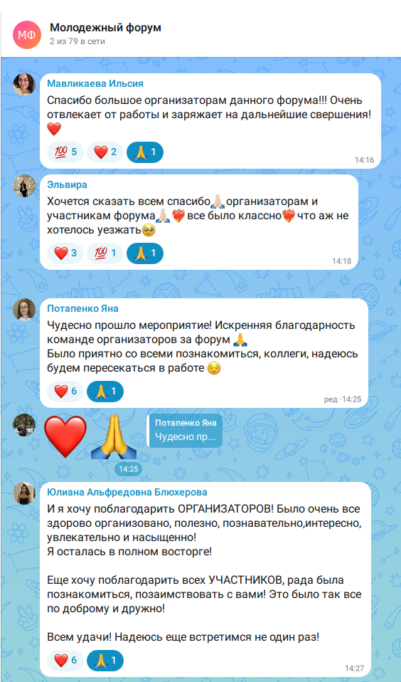 Подводя итоги, хочется также поделиться отзывами, которые оставили участники в завершение Молодежного форума.