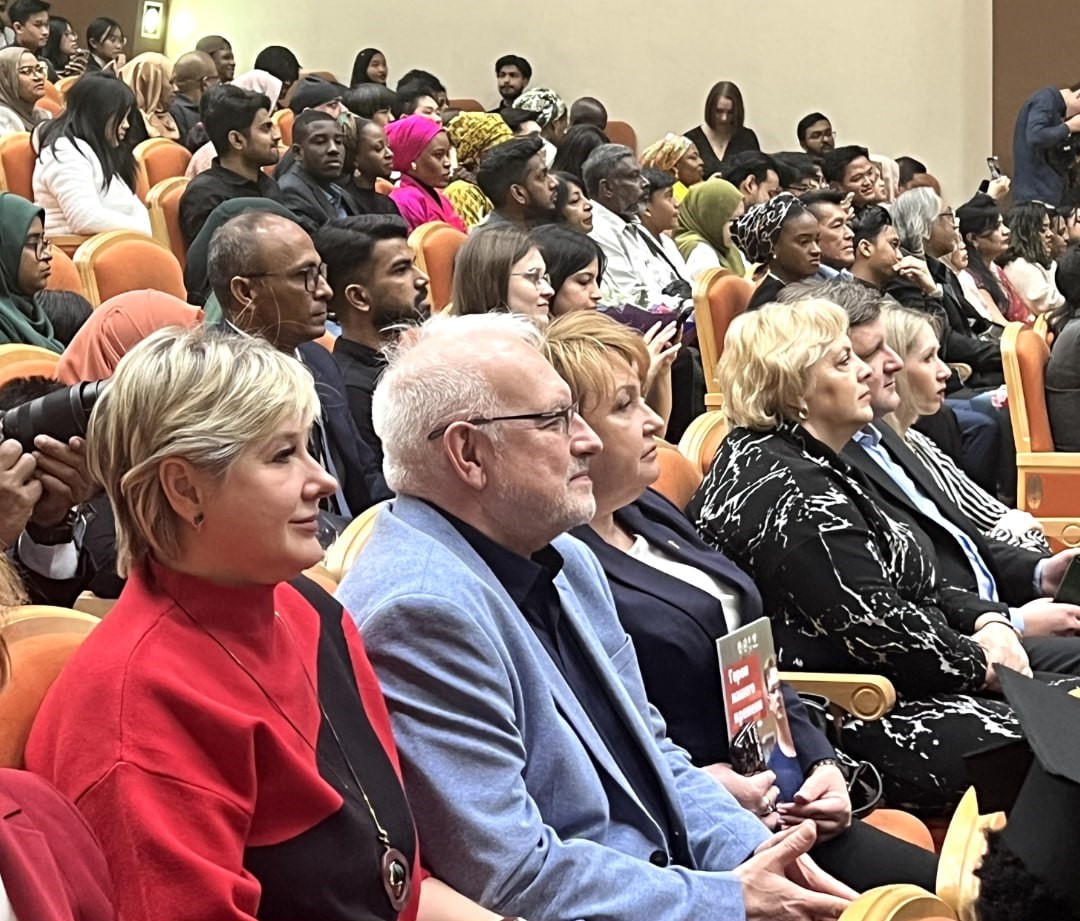 Почётными гостями церемонии вручения дипломов выпускникам 52-го потока иностранных студентов по специальности «лечебное дело» Курского государственного медуниверситета стали заместитель председателя Профсоюза Михаил Андрочников и лидер Курской областной организации Профсоюза Светлана Охотникова. Около 150 молодых специалистов из 12 стран завершили обучение, пополнив ряды профессионального медицинского сообщества.