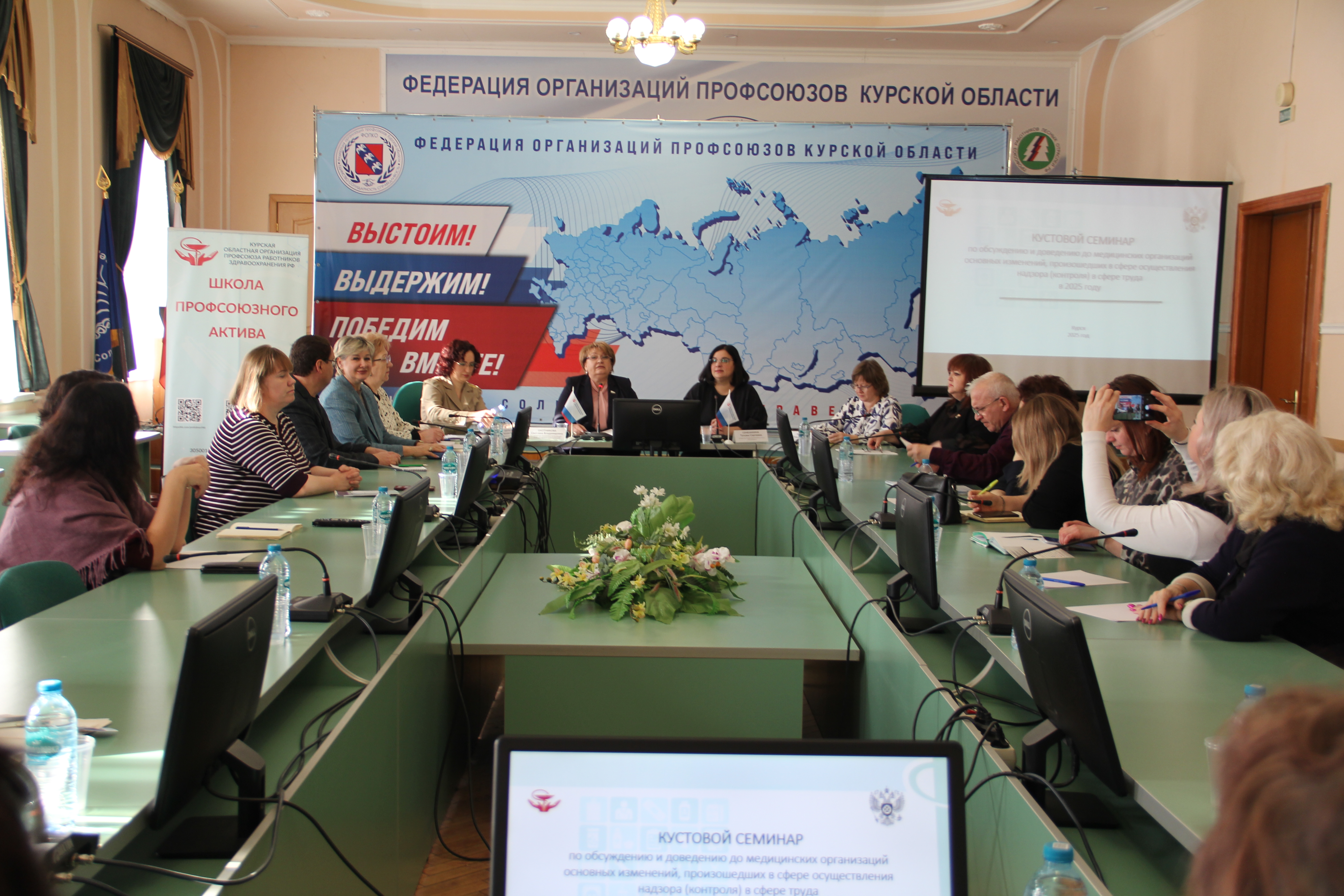 В рамках Соглашения о взаимодействии Курской областной организации Профсоюза и Государственной инспекции труда в Курской области было принято решение о проведении ряда кустовых семинаров по обсуждению и доведению до медицинских организаций основных изменений, произошедших в сфере осуществления надзора (контроля) в сфере труда в 2025 году.