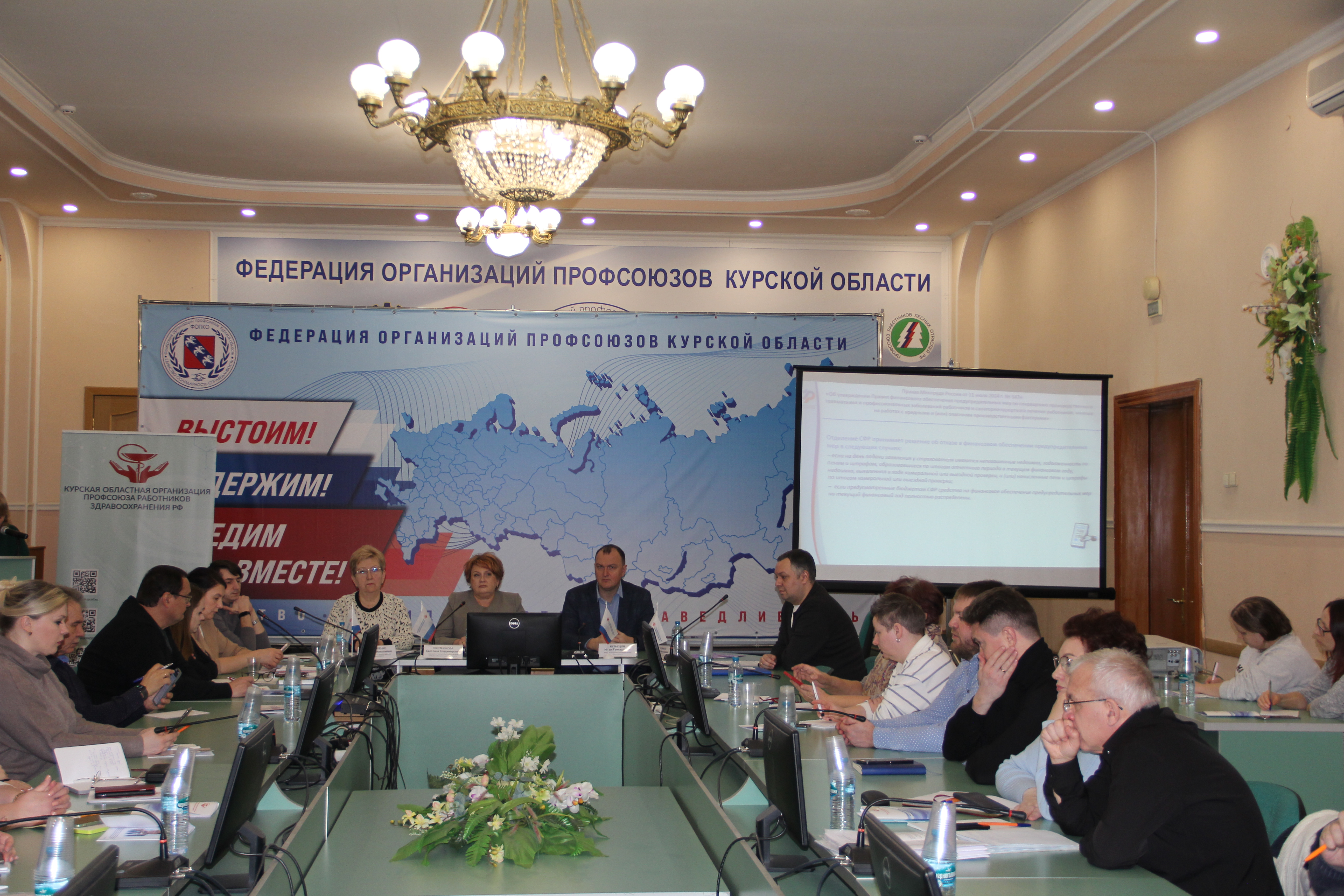 В Доме профсоюзов прошло рабочее совещание с участием заместителя министра здравоохранения Курской области Игоря Кузнецова, специалистов регионального Управления организации страхования профессиональных рисков Отделения СФР, Союза «Федерация организаций профсоюзов Курской области», представителей компаний - производителей СИЗ по вопросу, связанному с организацией обеспечения работников средствами индивидуальной защиты (СИЗ).