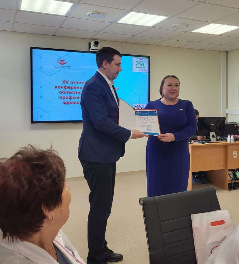 Ее вклад в здравоохранение региона отмечен грамотой министерства, которую вручил Андрей Каличкин.