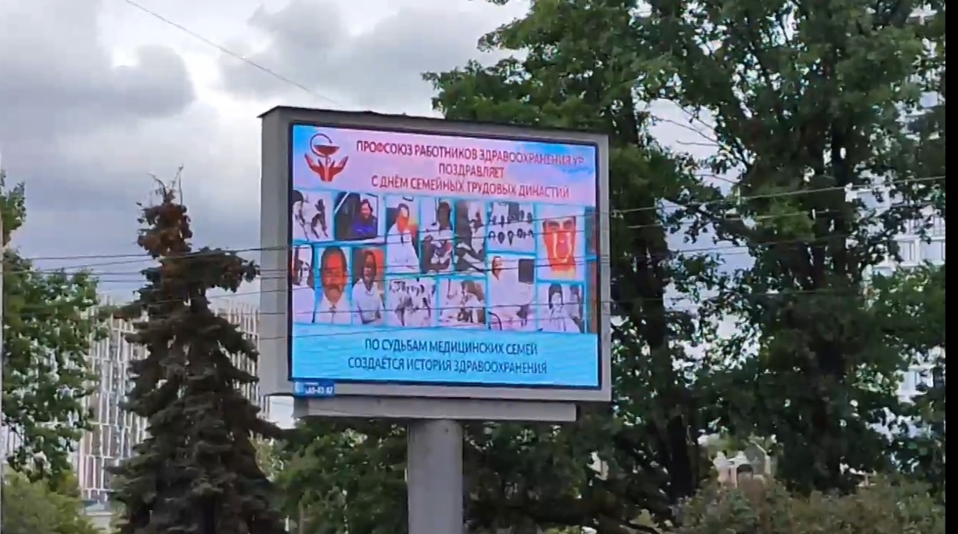 Ежегодно к Дню медицинских династий Удмуртская республиканская организация профсоюза работников здравоохранения Российской Федерации размещает видеоролик о медицинских династиях на уличных экранах города Ижевска.