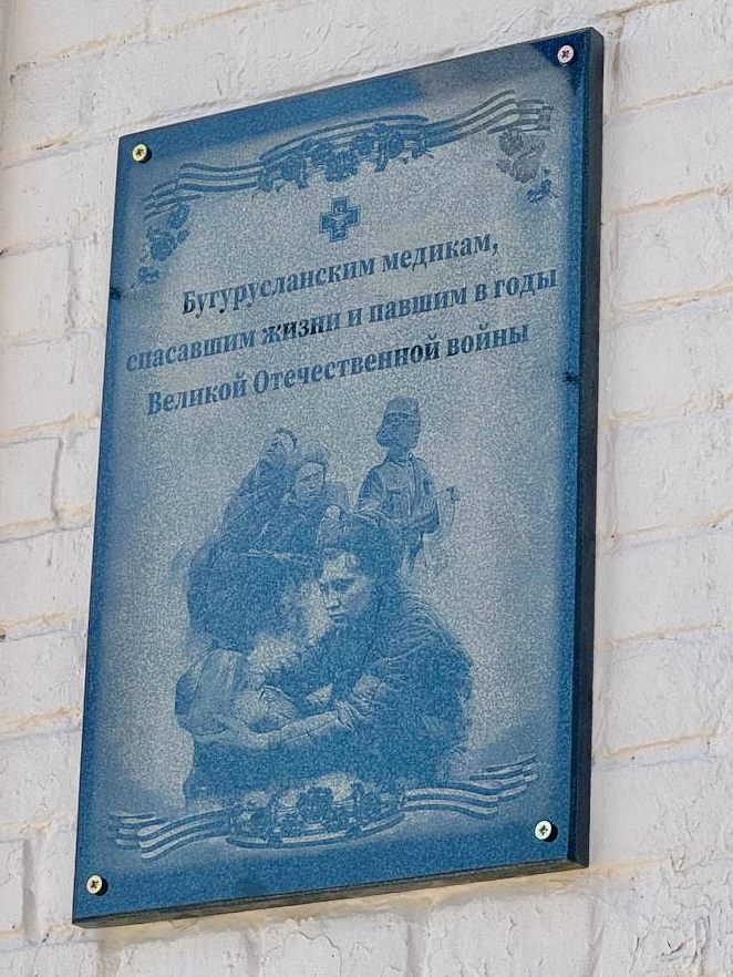 Сегодня в городе Бугуруслане Оренбургской области, по инициативе первичной профсоюзной организации ГБУЗ "Городская больница», с участием главы города Дьяченко Дмитрия Сергеевича, главного врача больницы Хайсанова Алмаза Гумаровича, состоялось открытие мемориальной доски бугурусланцам-медикам, которые трудились в госпиталях и спасали бойцов на полях сражений Великой Отечественной войны.