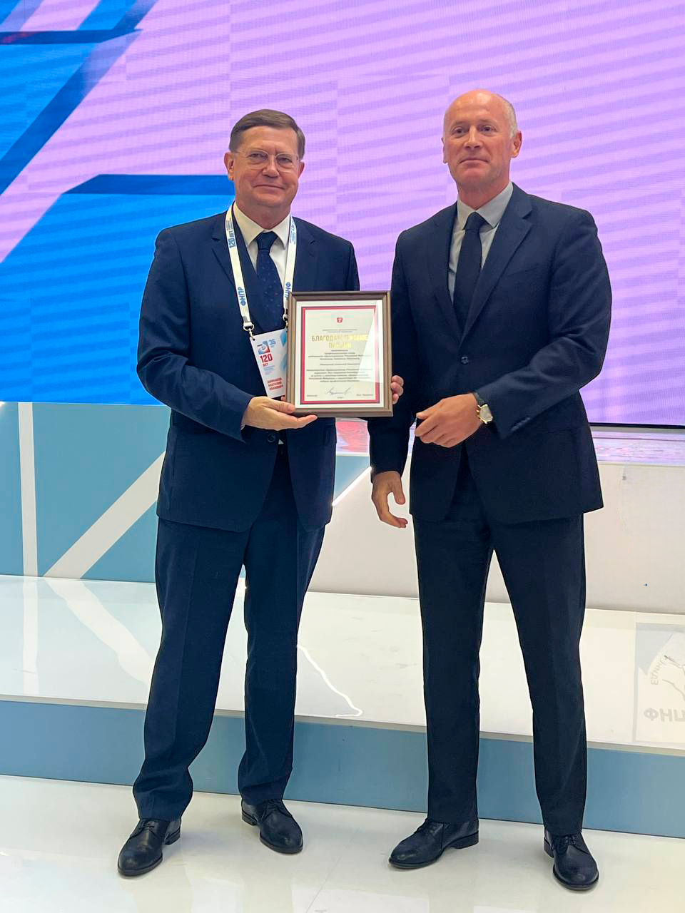 На торжественном заседании Генерального совета ФНПР председатель Профсоюза Анатолий Домникова получил Благодарственное письмо Министерства здравоохранения Российской Федерации. Награду передал заместитель министра здравоохранения Виктор Фисенко.