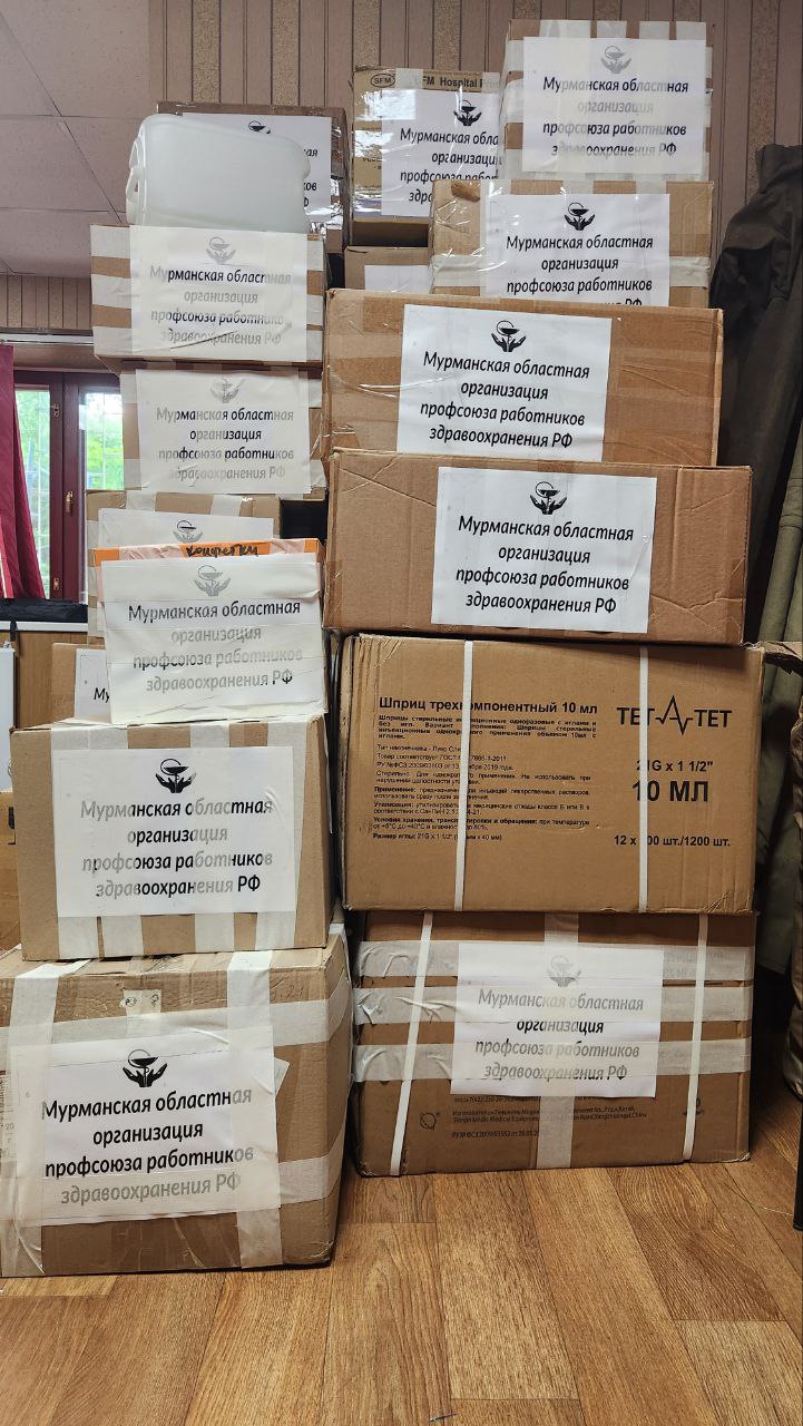"Профсоюз подготовил очередную партию гуманитарного груза для северян, которые находятся в зоне специальной военной операции. Отрадно отметить, что многие медработники - члены Профсоюза самостоятельно оказывают посильную помощь нашим бойцам: продолжают плести сети, собирать средства, вязать носки и направлять гуманитарные грузы в новые территории", подчеркнула председатель Мурманской областной организации Профсоюза Юлия Величко.