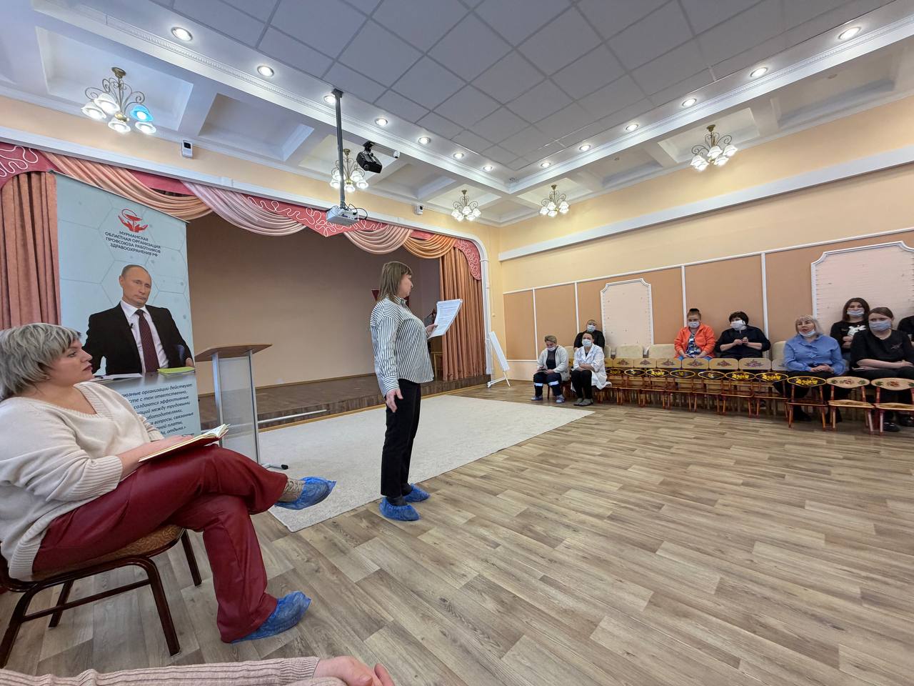 Юлия Владимировна рассказала сотрудникам о деятельности Профсоюза работников здравоохранения в Мурманской области.