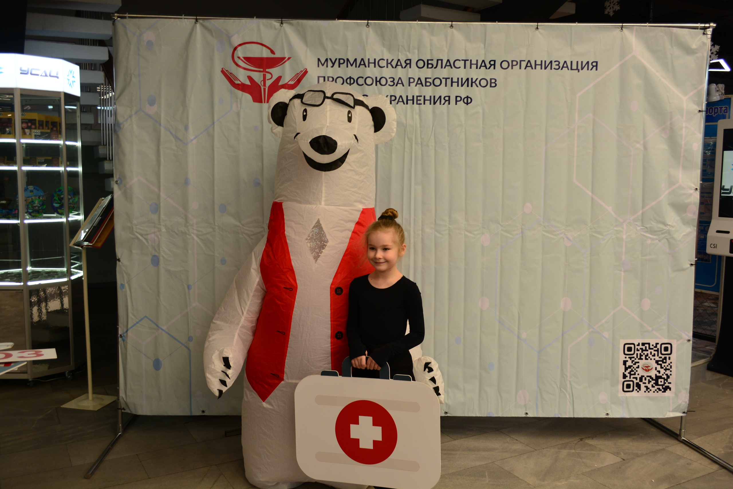 В фойе Ледового Дворца желающие устраивали дружеские матчи по аэрохоккею и настольному теннису.А белые медведи активно фоткались со всеми желающими у профсоюзного баннера.