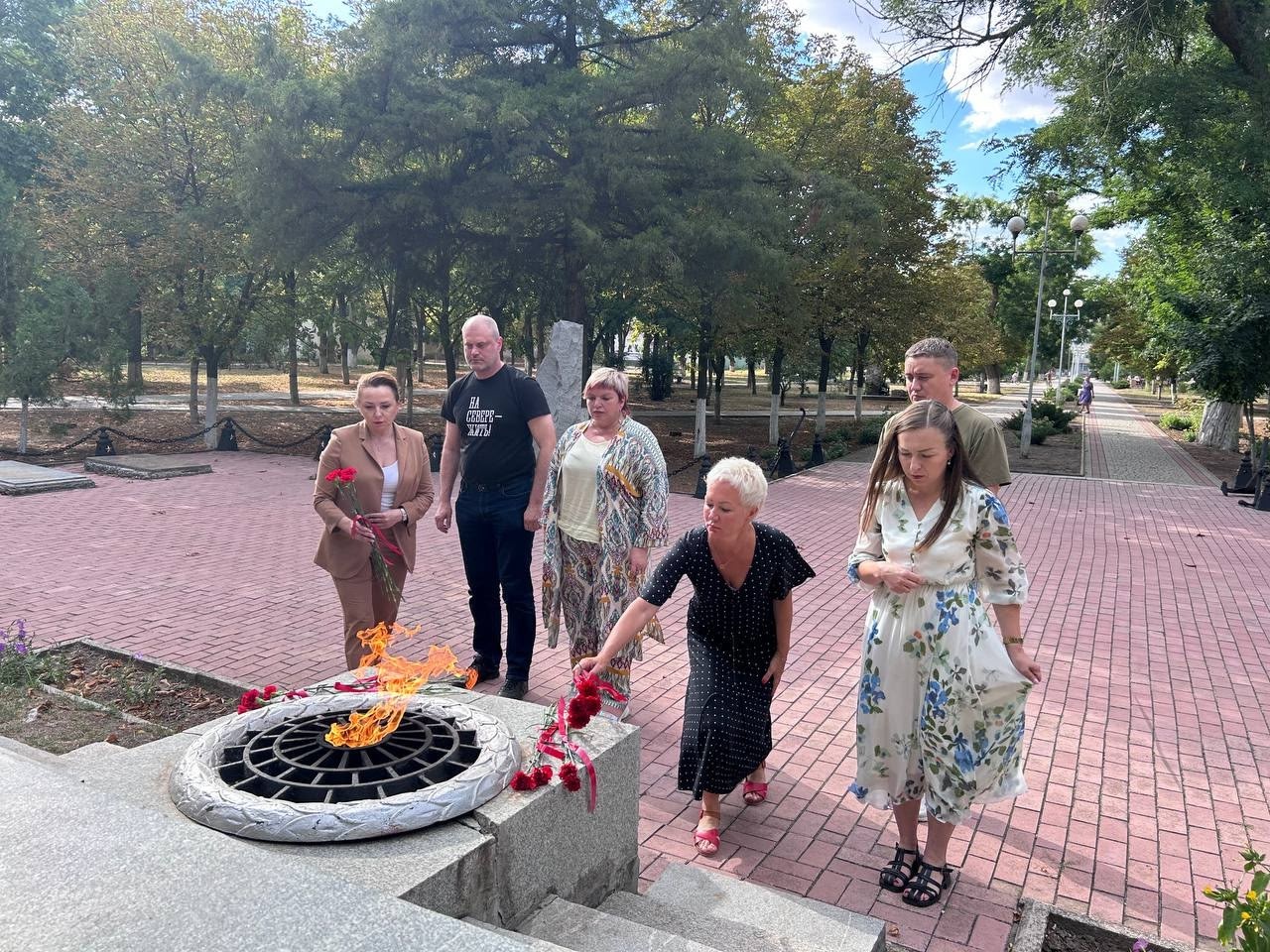 В ходе рабочего визита в Запорожскую область члены делегации совместно с представителями администрации Приморского района возложили цветы на мемориальном комплексе "Памяти воинам землякам, павшим в борьбе с фашистскими захватчиками в годы Великой Отечественной войны".