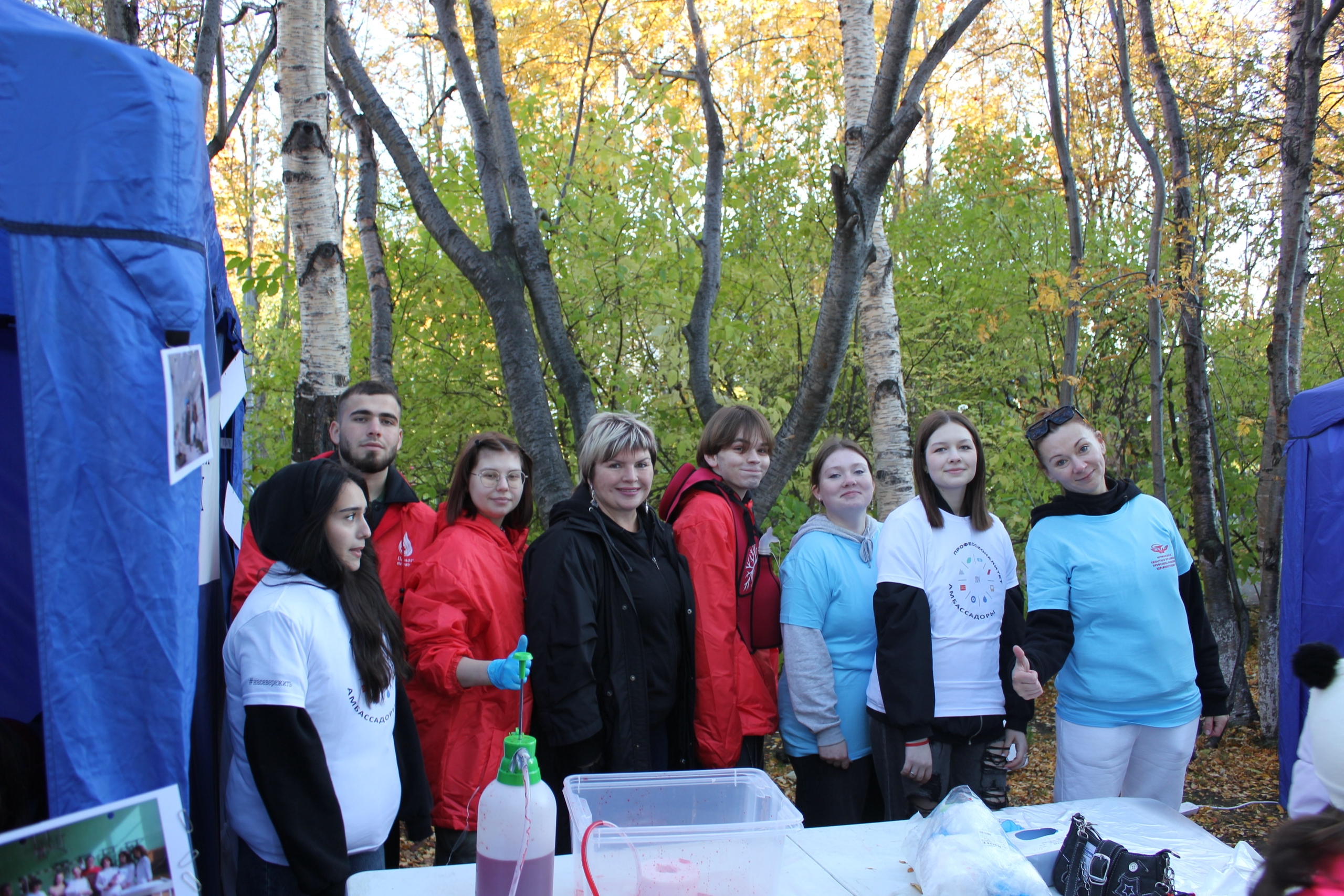 Всем желающим ребята демонстрировали приемы первой помощи, рассказывали о профессиях в медицине, о Профсоюзе здравоохранения и о Мурманском медицинском колледже. Самые смелые могли попробовать себя в действии: провести ИВЛ, спасти пострадавшего, если он "подавился" и даже провести тампонаду открытой раны и остановить кровь.