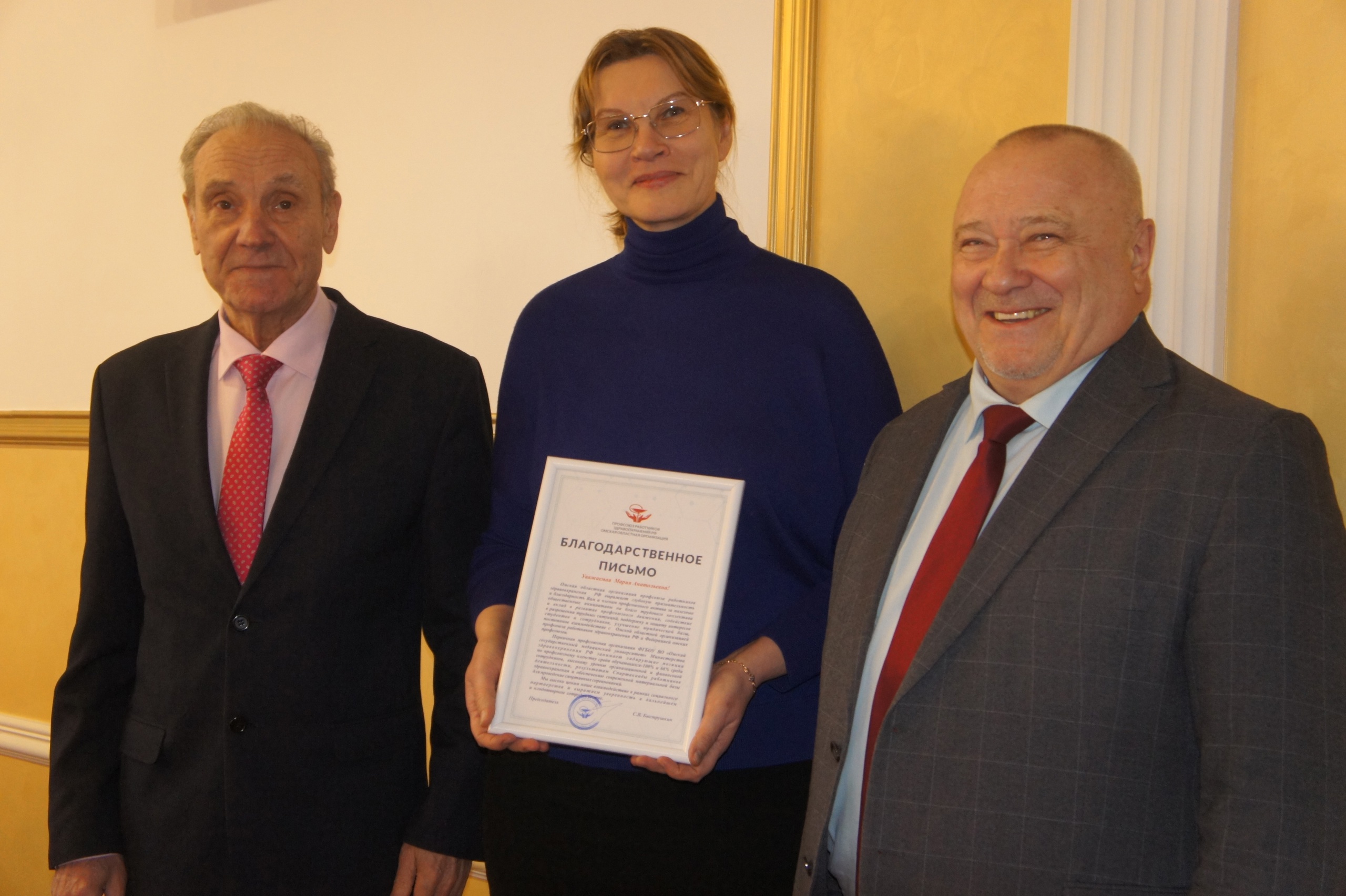 На церемонии вручения Благодарственного письма присутствовала председатель первичной профорганизации вуза Л.В.Лонская.