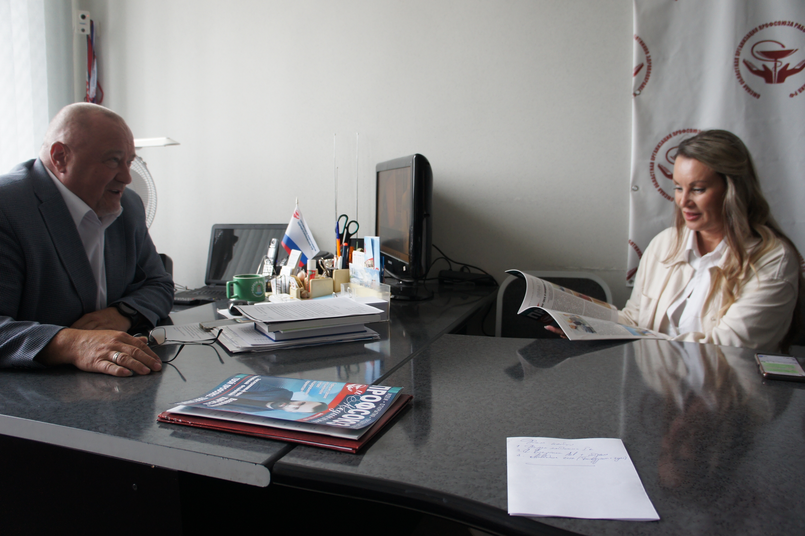 В рамках подготовки к проведению XXXIV отчетно-выборной конференции областной профорганизации, председатель обкома Профсоюза С.В.Быструшкин встретился шеф – редактором программы «Вести Омск» ГТРК «Иртыш» Светланой Аксеновой.