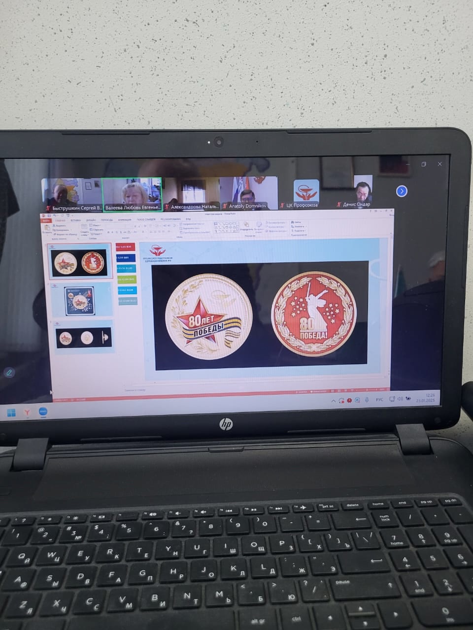 В заключение селекторного совещания был представлен для обозрения макет памятной профсоюзной медали к 80-летнему юбилею со дня Победы в Великой Отечественной войне (на фото), который разработан ЦК Профсоюза для награждения профсоюзных активистов.