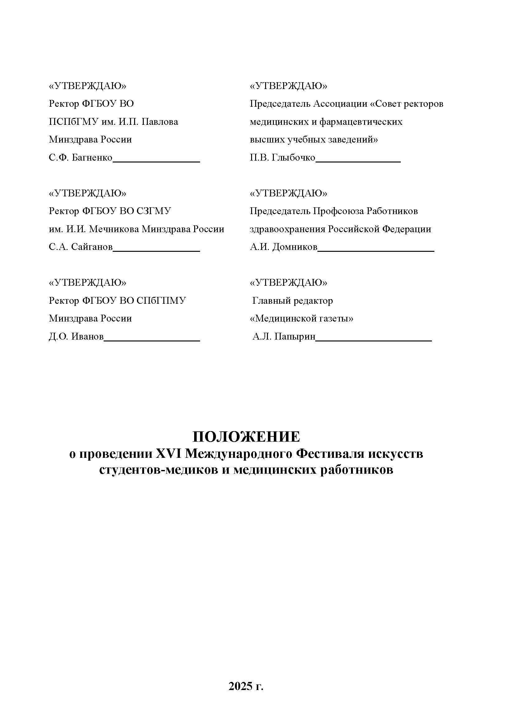 С 21 по 24 апреля 2025 года в Санкт-Петербурге под эгидой Профсоюза пройдет масштабное мероприятие — XVI Международный Фестиваль искусств студентов-медиков и медицинских работников, приуроченный к празднованию 80-й годовщины Победы в Великой Отечественной войне.