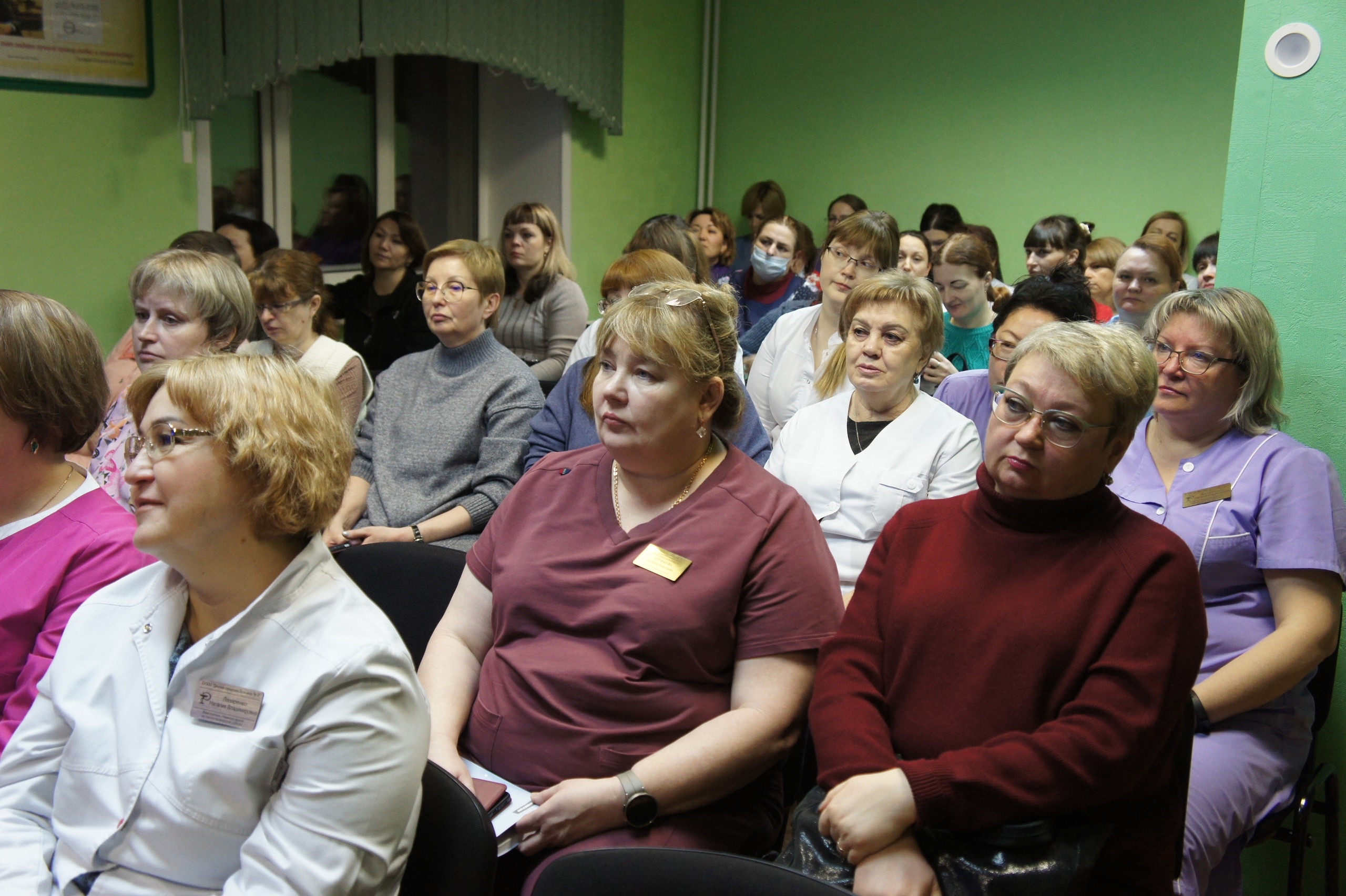 Главный врач Лариса Николаевна Гордий поблагодарила обком профсоюза за подарки, а также за заботу о детях и сотрудниках больницы.