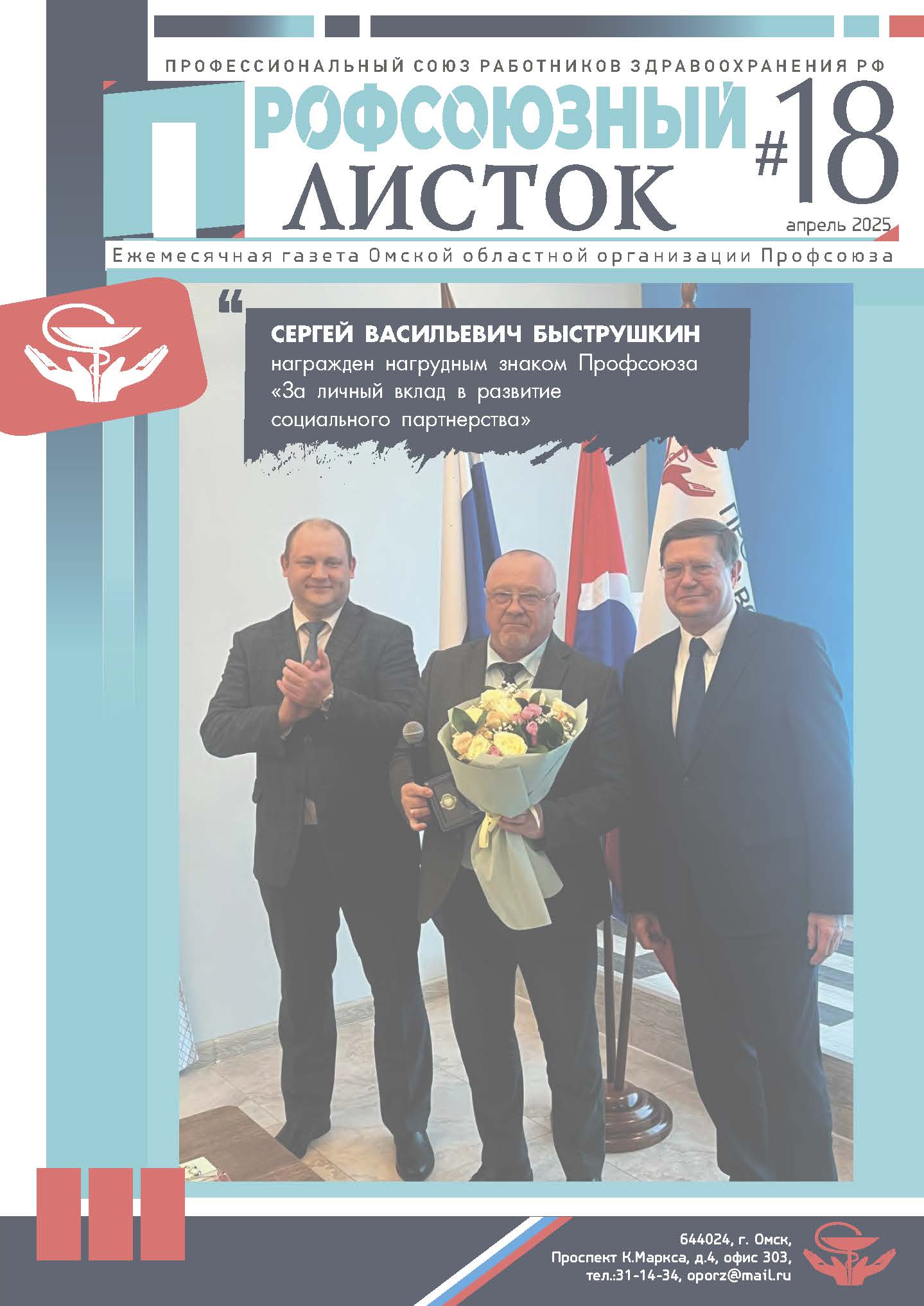 Омск: Вышел восемнадцатый (апрельский) номер ежемесячной газеты обкома профсоюза «Профсоюзный листок»