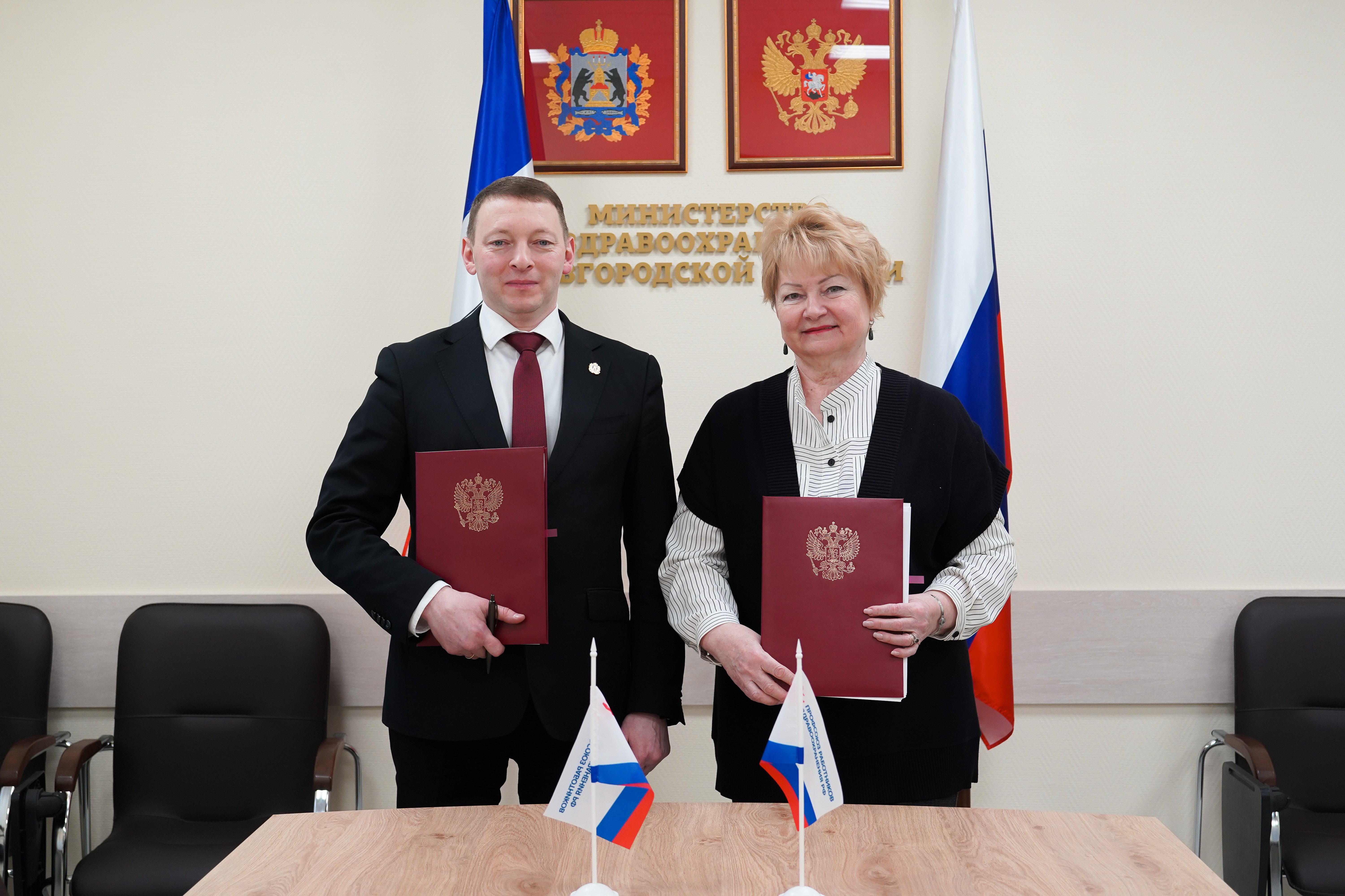 Председатель Новгородской областной организации Профсоюза Лариса Смелова и глава регионального Минздрава Валерий Яковлев скрепили своими подписями Отраслевое соглашение на 2025-2027 гг.