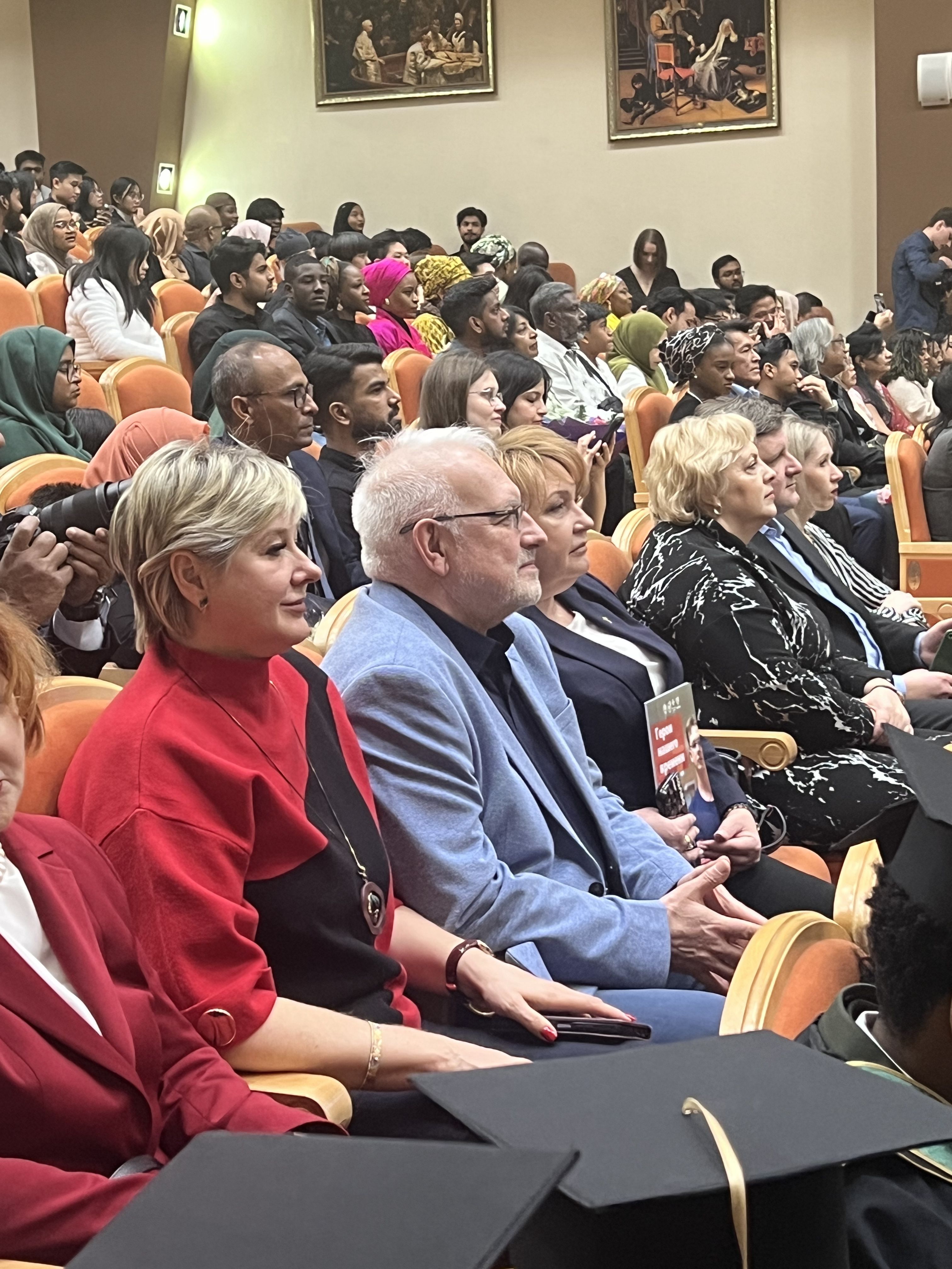 Почётными гостями церемонии вручения дипломов выпускникам 52-го потока иностранных студентов по специальности «лечебное дело» Курского государственного медуниверситета стали зампред Профсоюза Михаил Андрочников и лидер областной организации Светлана Охотникова. Около 150 молодых специалистов из 12 стран завершили обучение, пополнив ряды профессионального медицинского сообщества.
