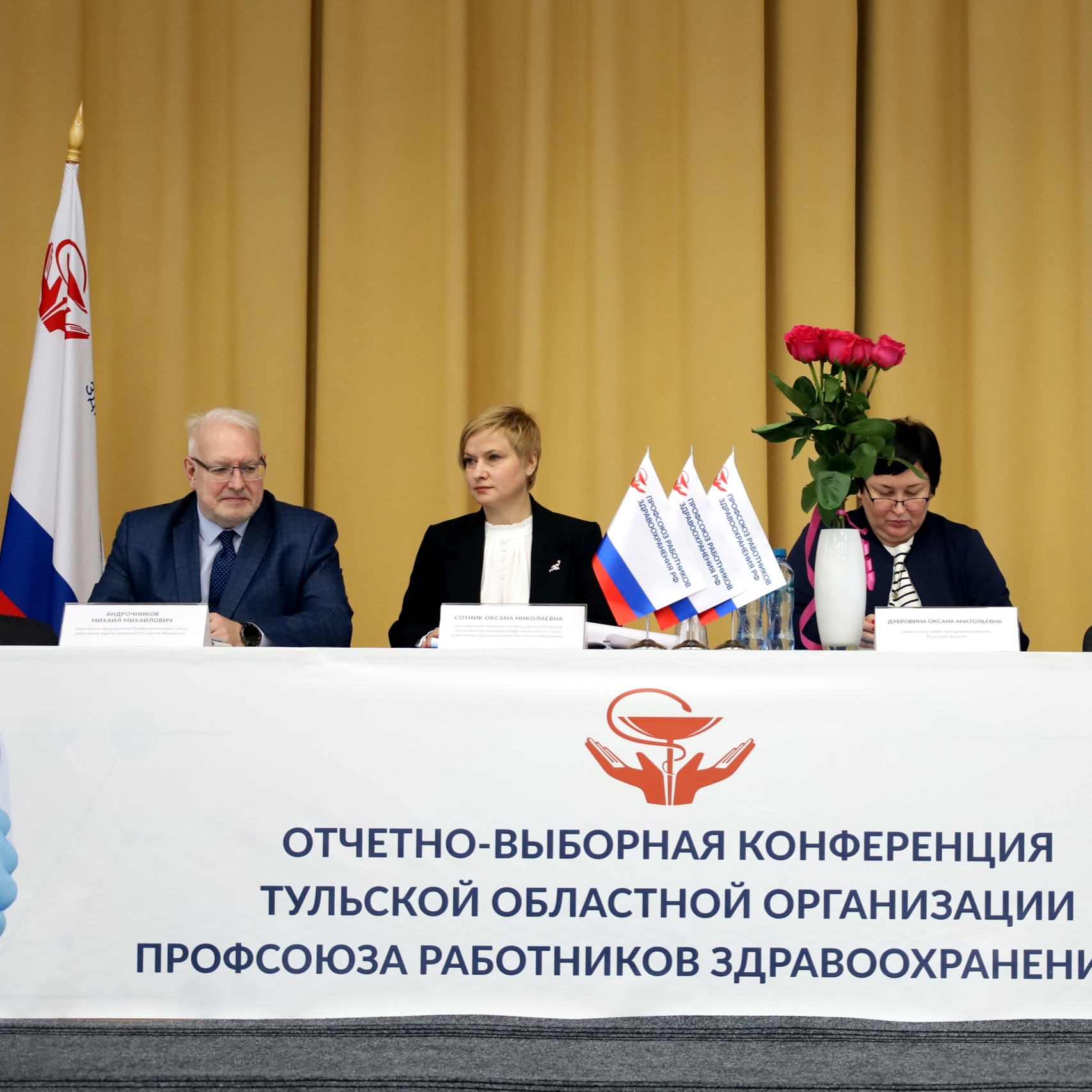 Гостями Конференции стали заместитель председателя Профсоюза работников здравоохранения РФ Михаил Андрочников, заместитель министр здравоохранения региона Оксана Дубровина, лидер профобъединения Тульской области Сергей Судницын, начальник заработной платы, охраны труда и социального партнерства Министерства труда и социальной защиты Тульской области Ольга Герасимова.
