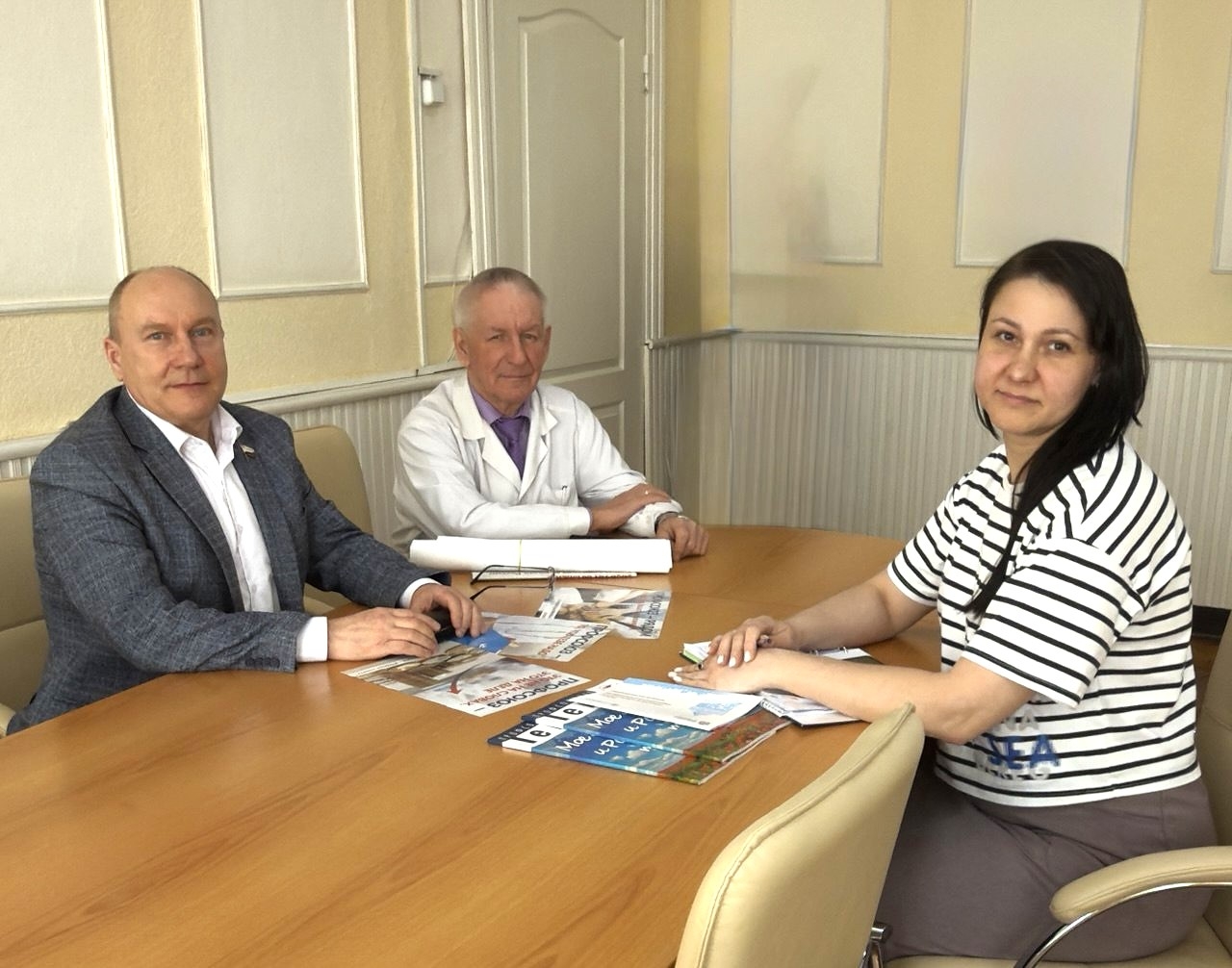 Председатель областной Профсоюзной организации Василий Приказнов провел рабочую встречу с главным врачом Викторией Фигаревой и председателем ППО Владимиром Евсеевым.