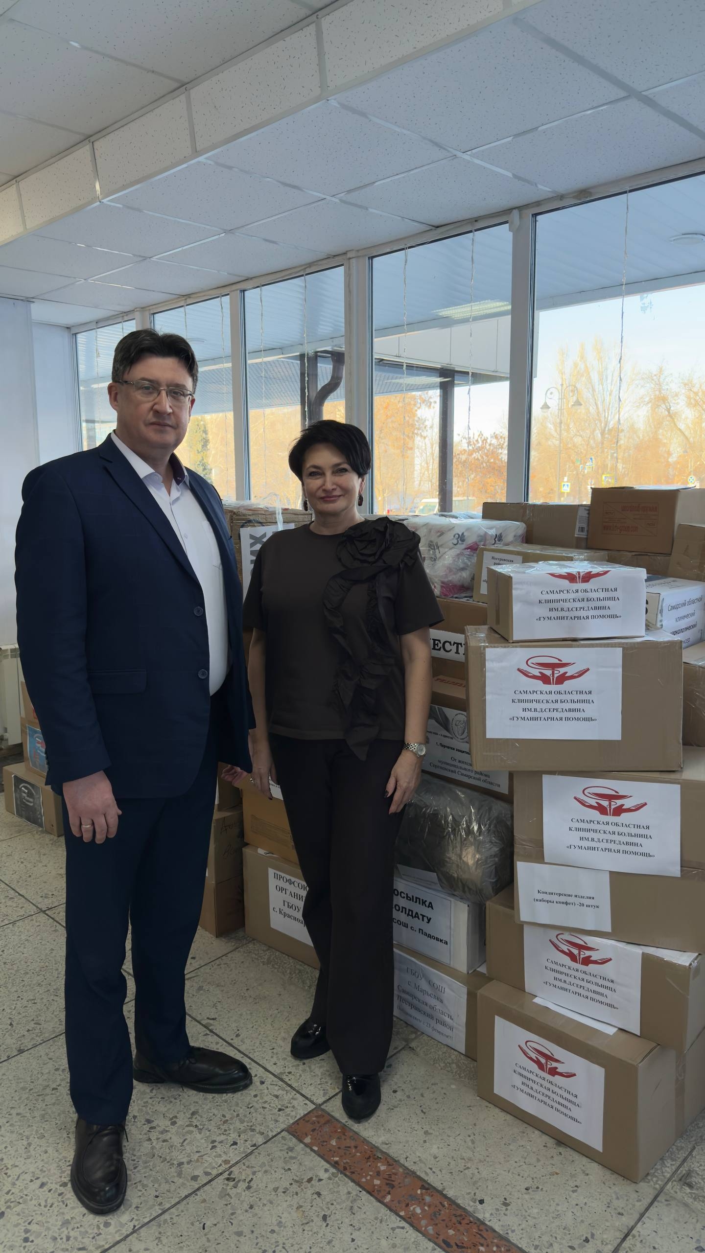 В преддверии Дня Защитника Отечества, 20 февраля, на площади им. Д.И. Козлова от здания МВЦ «Самара космическая» был отправлен гуманитарный конвой в рамках акции «СВОИХ НЕ БРОСАЕМ», собранный усилиями профсоюзных организаций региона. В отправке приняли участие Татьяна Сивохина, председатель Самарской областной организации Профсоюза работников здравоохранения РФ, и Олег Осокин, участник специальной военной операции, врач медицинского пункта 268 самоходного артиллерийского полка, член профсоюза Самарского областного клинического онкологического диспансера.