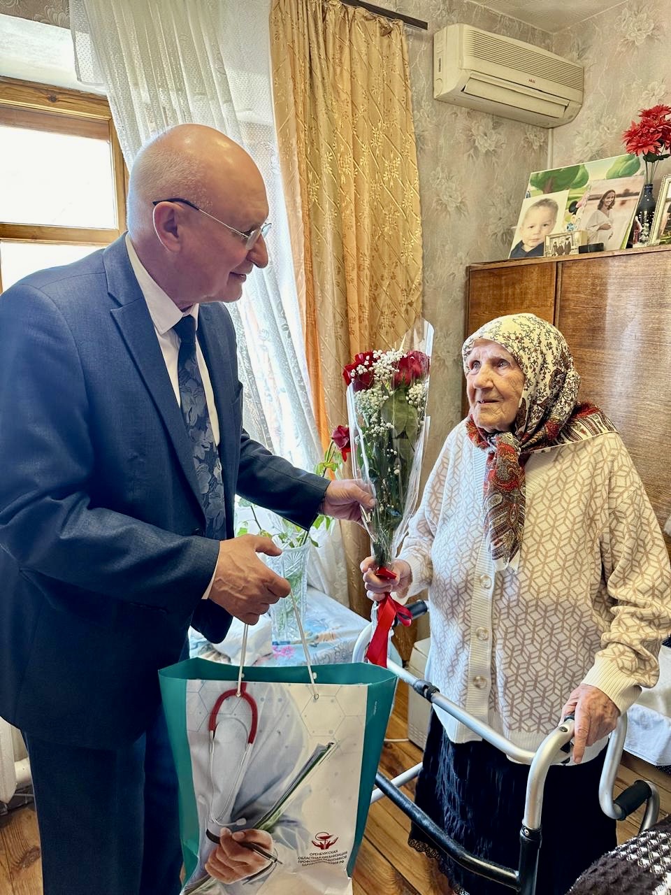 Председатель Оренбургской областной профсоюзной организации работников здравоохранения РФ Карпец В.В. навестил и поздравил с наступающим праздником Горянову Александру Михайловну.