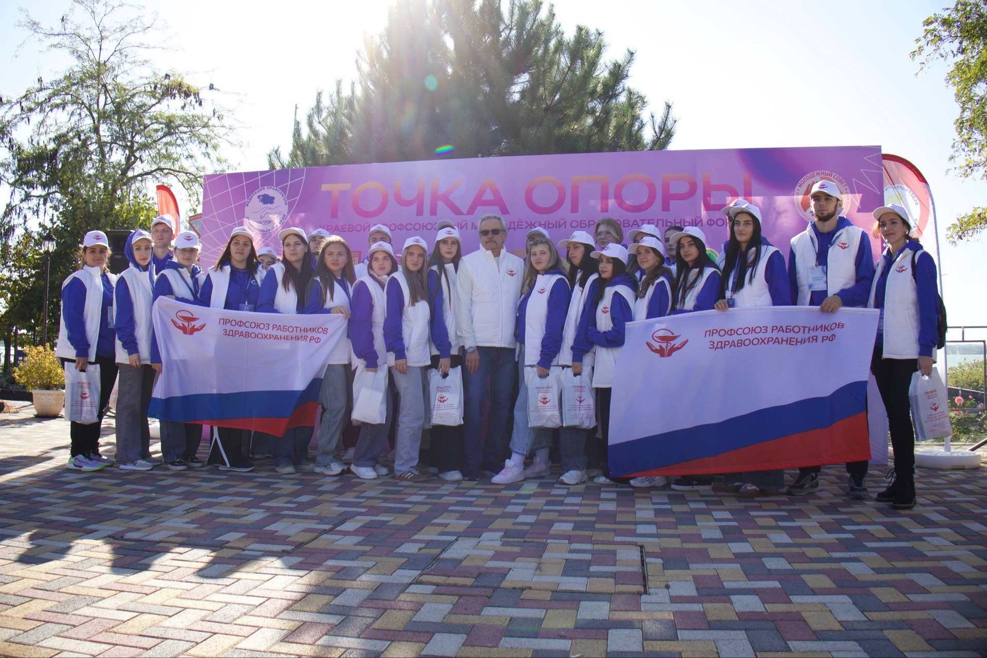 На торжественном открытии форума присутствовал председатель Ставропольской краевой организации профсоюза работников здравоохранения РФ Александр Кривко. Он вручил ребятам подарки – бейсболки, жилетки, футболки, бутылки для воды с профсоюзной символикой.