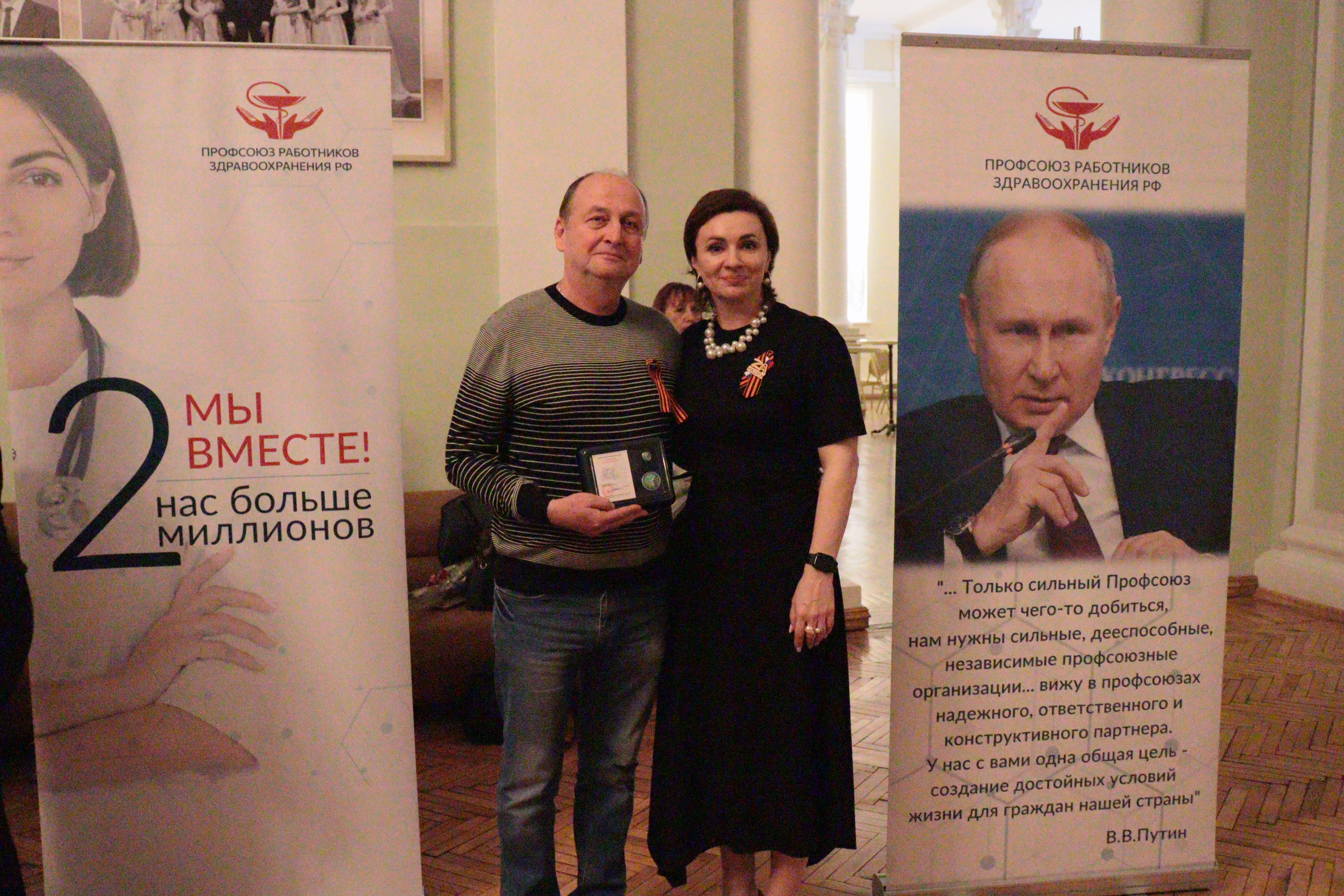 Председатель Пятигорской городской организации профсоюза работников здравоохранения РФ Марина Синица вручила нагрудный знак Профессионального союза работников здравоохранения РФ «За организацию оздоровления и отдыха» Сергея Юрьевича Седых – председатель первичной профсоюзной организации ГБУЗ СК «Пятигорская городская клиническая больница № 2».