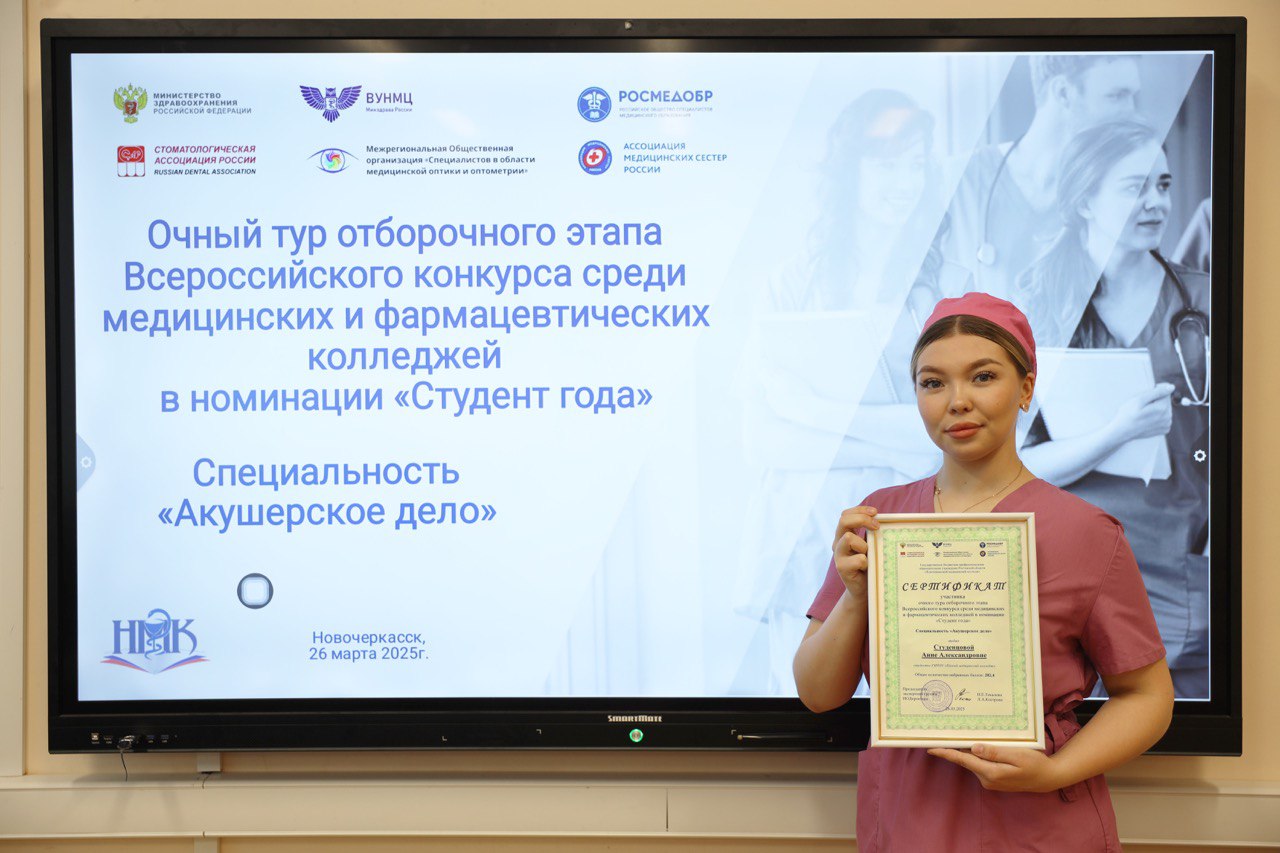 Анна Студенцова заняла первое место по своему профилю – "Акушерское дело" и теперь представит Южный Федеральный округ в финале конкурса, который состоится в Москве с 26 по 30 мая.