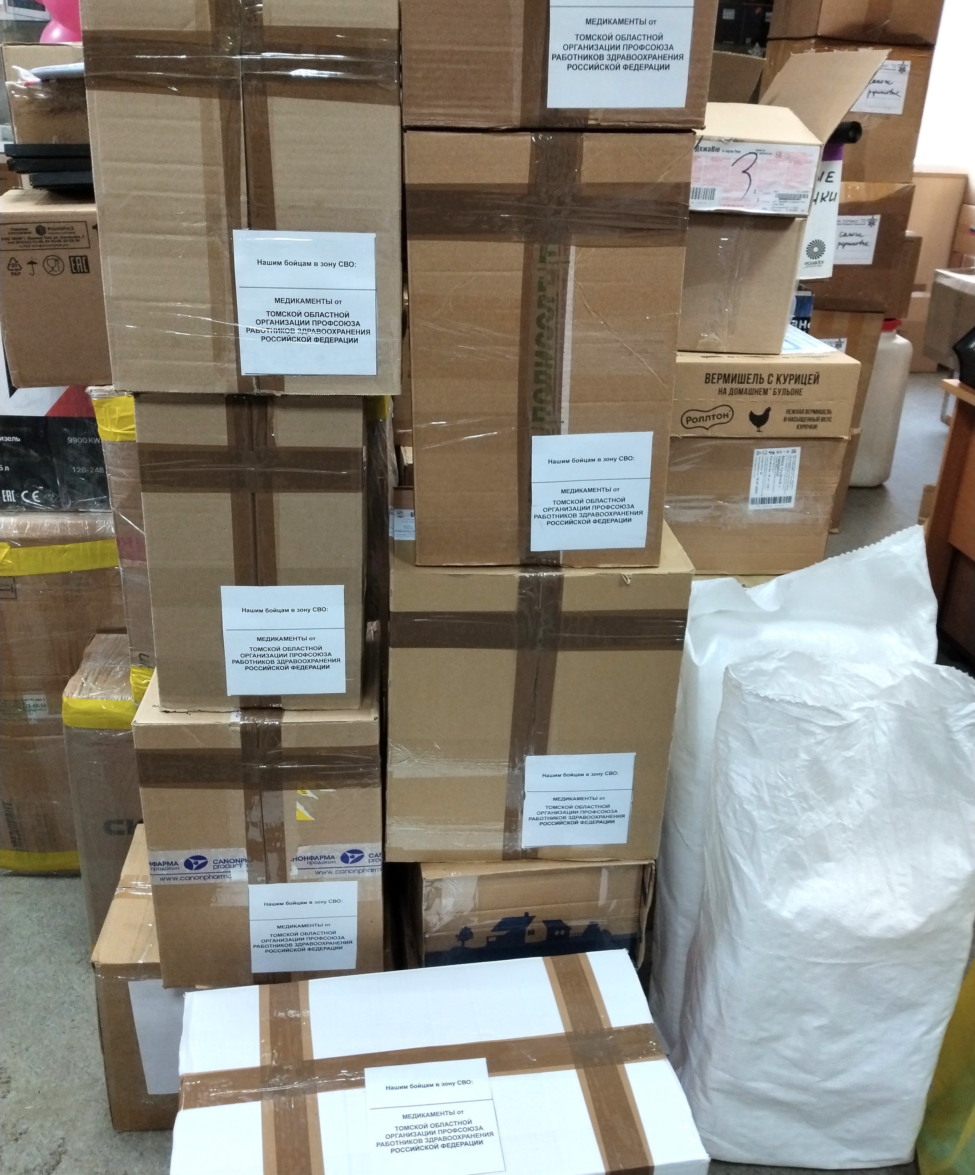 Первичные профсоюзные организации многих медицинских учреждений Томской области сегодня помогают фронту, отправляя в зону специальной военной операции лекарственные препараты, продукты питания, одежду, предметы первой необходимости, электроприборы и многое другое. Нередко такая помощь организуется при содействии администраций медучреждений в рамках социального партнерства, а также неравнодушных граждан, которые закупают на свои личные деньги все необходимое, плетут маскировочные сети, делают окопные свечи, вяжут теплые вещи, изготавливают ранозаживляющие мази.
