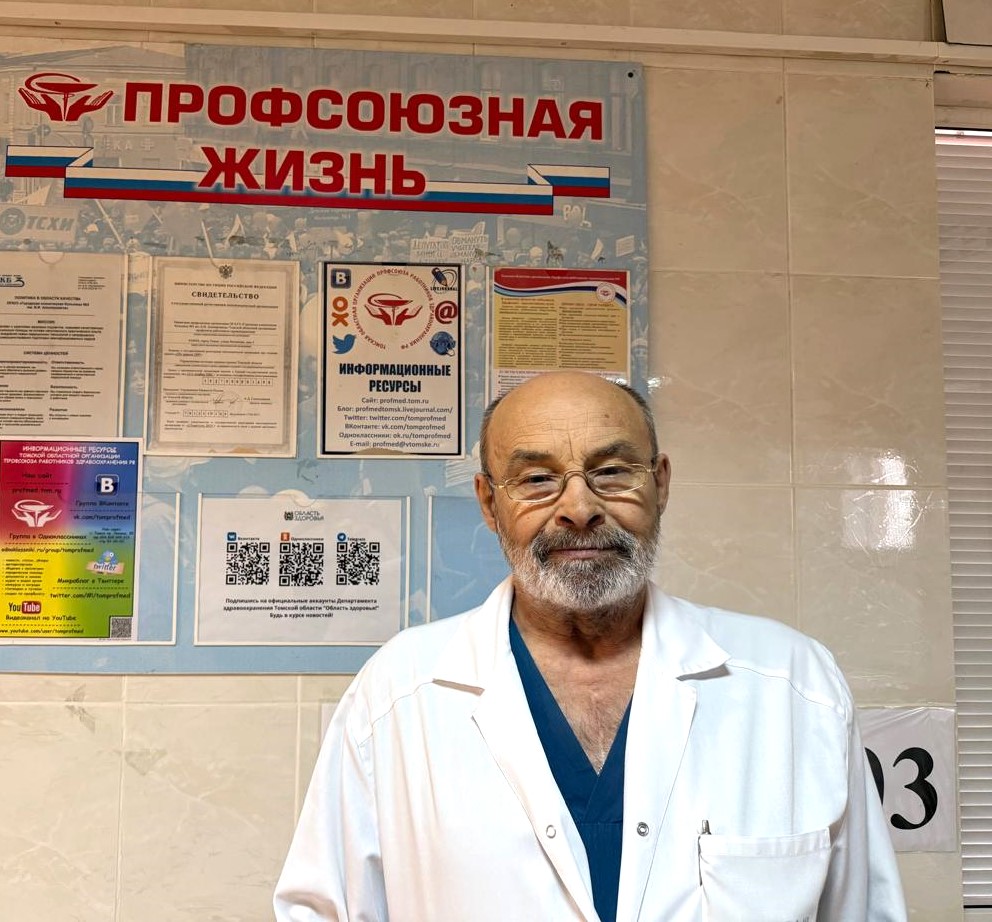 В Профсоюзе со студенческой скамьи. В течение 15 лет – с 1984 по 1999 г.г. был активным членом профсоюзного комитета Горбольницы № 3, занимался вопросами охраны труда и заработной платы, и довольно успешно. В конце восьмидесятых, например, ему удалось добиться для работников ряда специальностей повышения зарплаты в полтора раза. Таким образом, работая, не забывал заботиться о коллегах. Всегда участвовал в организации спортивных мероприятий. Награжден медалью за вклад в развитие профсоюзного движения в Томской области.