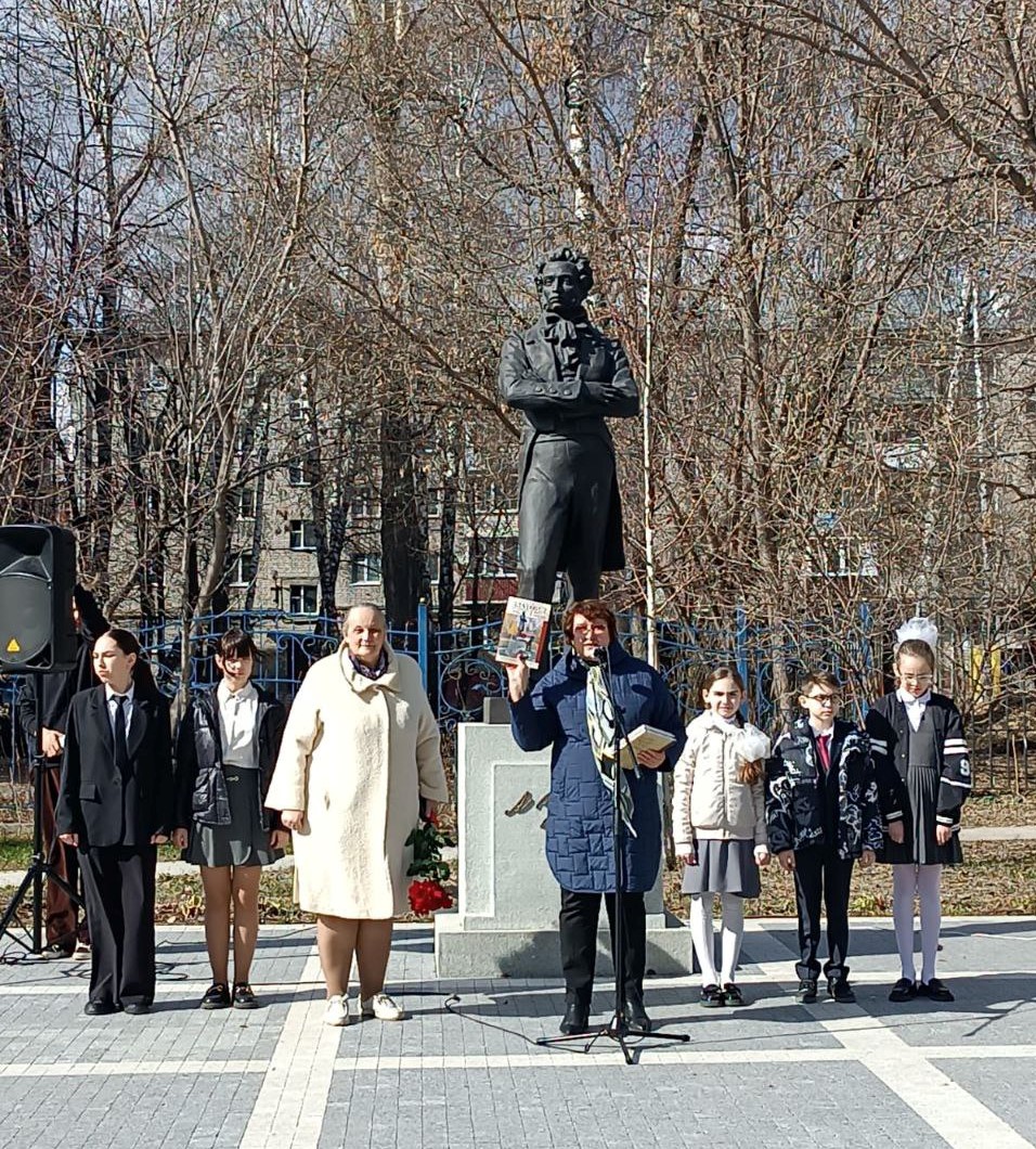 Старт был положен в саду гимназии, у памятника А.С. Пушкину, где председатель Районной организации профсоюза работников здравоохранения Авиастроительного и Ново-Савиновского районов г.Казани, поэт Татьяна Ивановна Сушенцова поздравила собравшихся с замечательной традицией ежегодной проверки своей грамотности и прочитала авторское стихотворение "Пушкин в Казани".