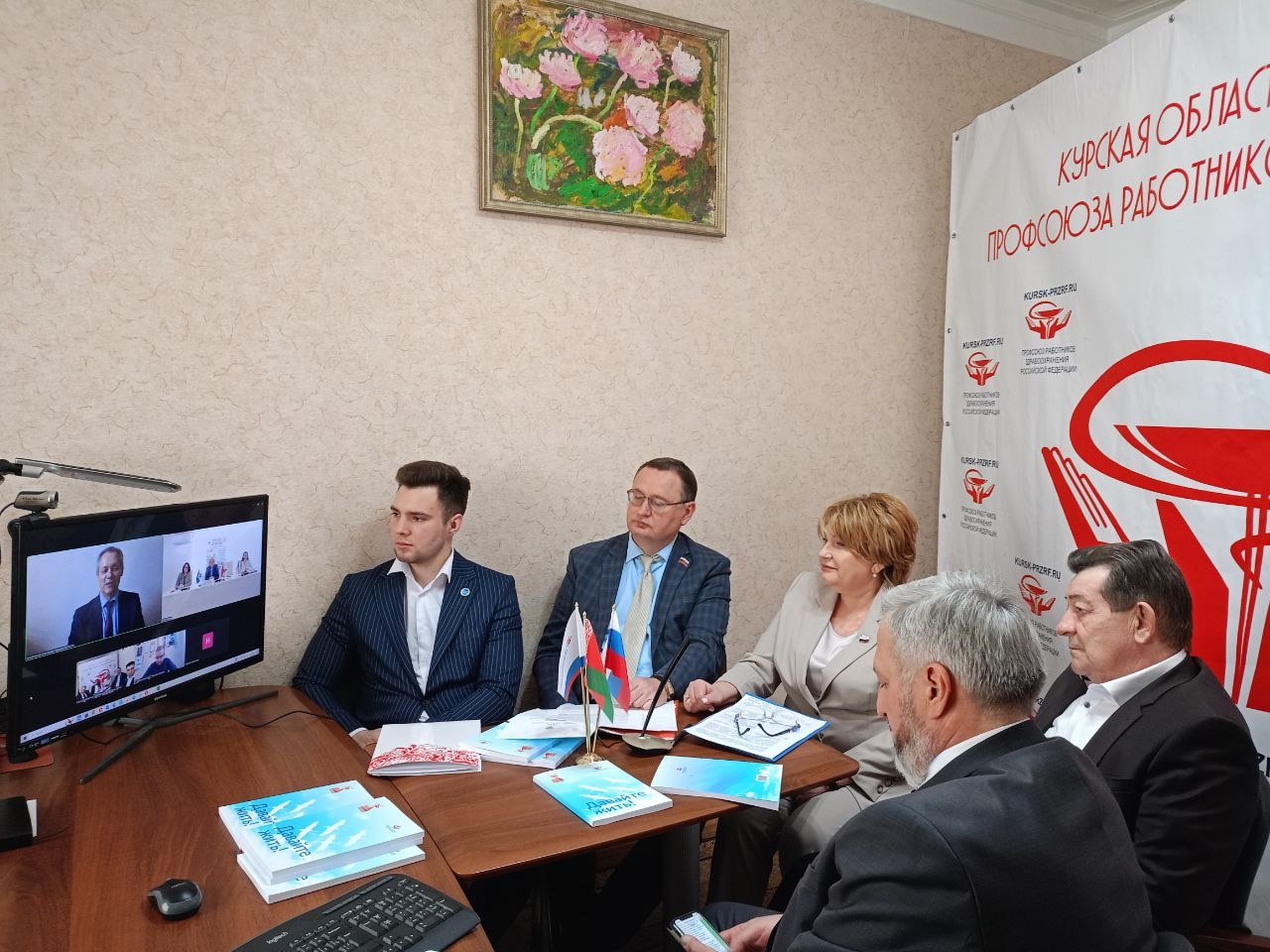 Международный телемост Курск—Тверь—Гомель «Вместе встречаем 80-летие Великой Победы» объединил профсоюзы и руководителей здравоохранения двух братских стран.