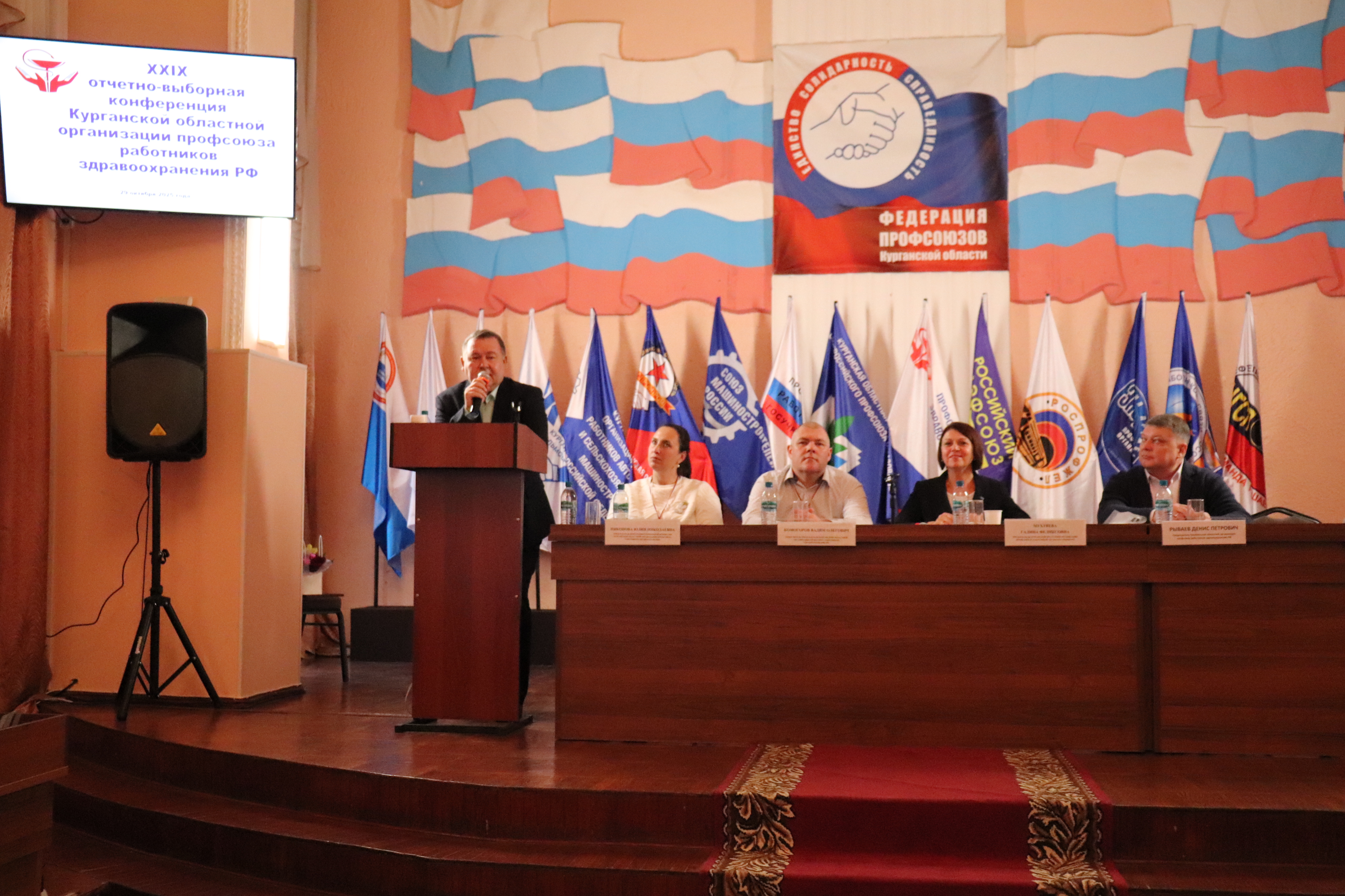 Среди гостей — председатель Федерации профсоюзов Курганской области Вячеслав Савин, лидер Челябинской областной организации Профсоюза Денис Рываев, начальник отдела Департамента здравоохранения Курганской области Виктория Суходоева, представители регионального совета Ассоциации профсоюзов непроизводственной сферы.