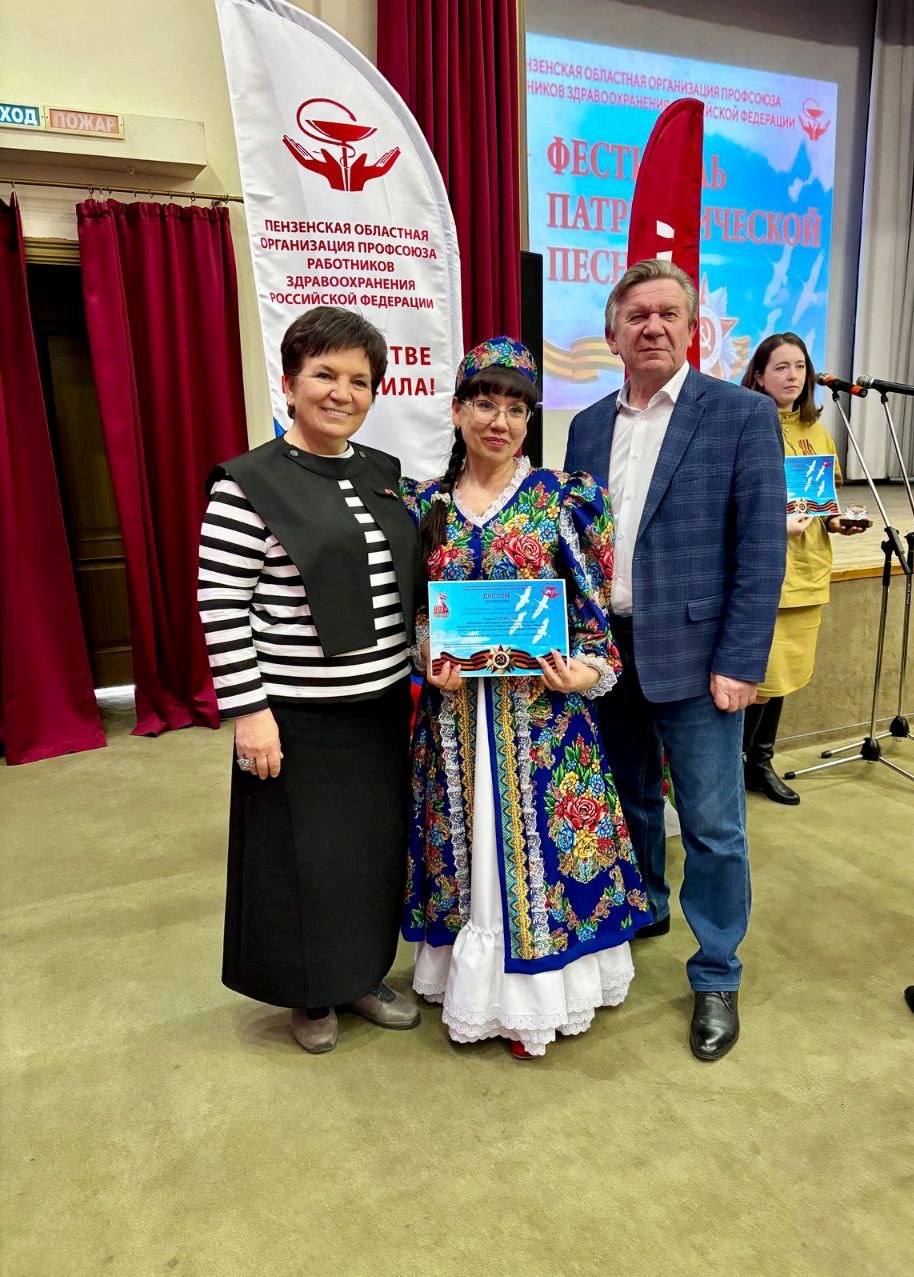 Самые талантливые медицинские работники региона выступили на фестивале патриотической песни, посвященном 80-летию Победы в Великой Отечественной войне, организованном Пензенской областной организацией Профсоюза работников здравоохранения РФ.