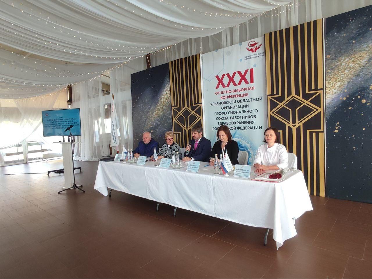 В Ульяновске состоялась XXXI отчётно-выборная конференция областной организации Профсоюза. Среди приглашённых — секретарь ЦК Профсоюза, начальник организационно-аналитического управления Наталия Галенко, председатель Федерации профсоюзов Ульяновской области Анатолий Васильев, начальник департамента делопроизводства, информационной и кадровой политики в здравоохранения Минздрава региона Екатерина Семёнова.