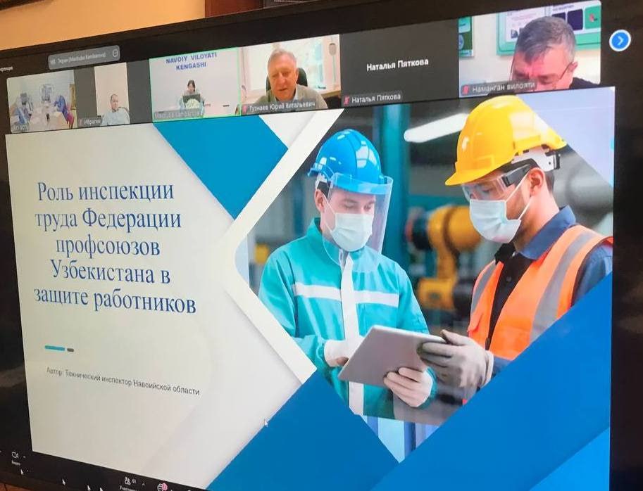 От Профсоюза выступил главный технический инспектор труда ЦК Юрий Гузнаев. Начальник отдела условий и охраны труда Правового Управления Профсоюза предложил расширять обмен опытом между профсоюзными техническими инспекциями стран СНГ на базе ежегодной международной выставки-форума «Безопасность и охрана труда», которая уже зарекомендовала себя как удобная профессиональная площадка.
